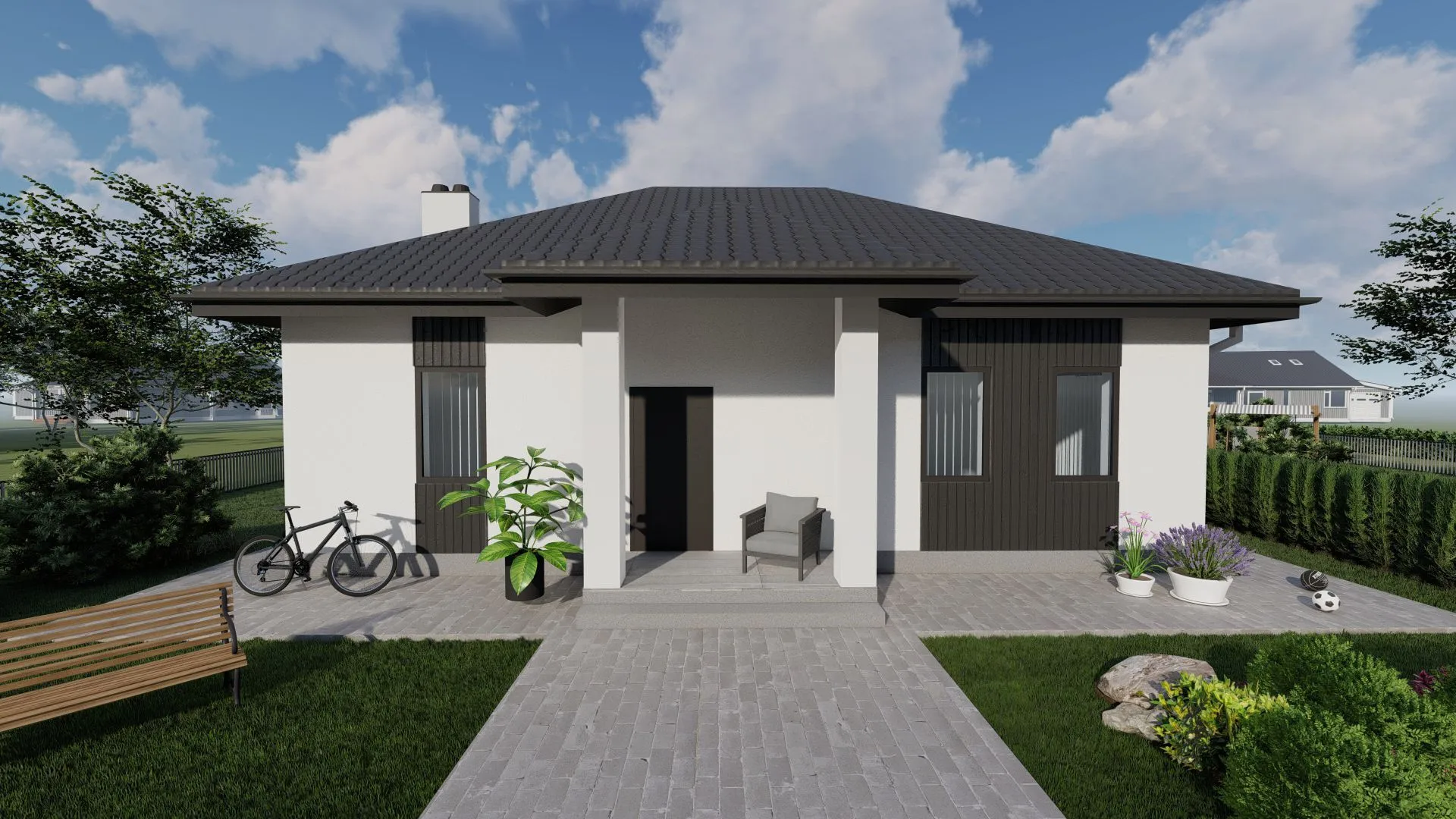 **Загородный дом «Чехия»** – настоящий оазис гармонии и уюта. Вы ощутите атмосферу европейского стиля уже при первом шаге в просторную гостиную, где керамический блок и изысканные деревянные детали соединяются воедино, а четырехскатная крыш с характерным вальмовым профилем добавляет дому строгости и элегантности. Дом одноповерхный, что делает его особенно удобным для семейного обитания: отсутствие лестниц облегчает движение по дому, а открытая планировка создаёт ощущение простора и свободы. В «Чехии» круглогодичное проживание – не просто слово, а реальность. Плотные стены из керамического блока обеспечивают отличную теплоизоляцию, позволяя наслаждаться теплой и уютной атмосферой в любую погоду. Внутри вы найдете всё необходимое для комфортного быта: открытая кухне‑гостиную с большим столом, ванных комнат с современной сантехникой, а также достаточно пространства для хранения. Даже без прицепок и гаражей, дома предусмотрено достаточно места для хранения велосипедов, садового инвентаря и других вещей. Этот дом – идеальное место для тех, кто ценит сочетание классической красоты и современного комфорта. Вдохновлённый европейскими традициями, он приглашает к созданию новых семейных историй, уютных вечеров и ярких воспоминаний. «Чехия» – это ваш личный уголок спокойствия, который ждёт, чтобы стать частью вашей жизни.