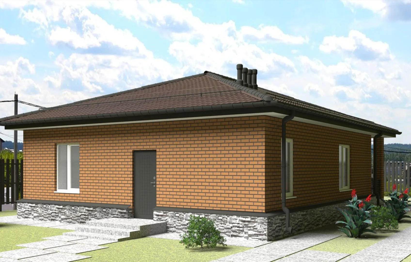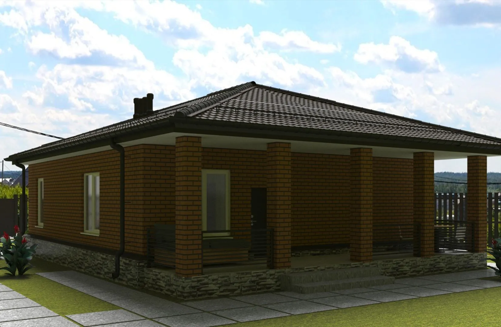 Загородный дом «Green Star» – это элегантный оазис классического стиля, созданный для того, чтобы стать вашим личным убежищем и одновременно местом встреч с близкими. Одна надземная этажа, тщательно продуманные пропорции и четыре скатные крыша придают дому ощущение уюта и благородства. Теплый, натуральный камень и кирпичная кладка создают тёплую и стабильную оболочку, защищая ваше жилище от капризов погоды и даря ощущение домашнего очага в любое время года. В «Green Star» нет поводов для компромиссов: круглогодичное проживание обеспечено ярким светом, просторными комнатами и высоким качеством строительства. Отсутствие балконов и лоджий позволяет сохранить изящность фасада, а на обширной веранде можно провести утренний кофе, погрузиться в чтение, а вечером устроить семейный ужин под вечерним небом. Внутри предусмотрено чердачное помещение, которое можно превратить в уютную мастерскую, детскую комнату или дополнительные спальни – ваш личный «потайник», где среализуются любые идеи. «Green Star» – это идеальное сочетание традиций и функциональности. Вы будете наслаждаться спокойствием кирпичных стен, в то время как яркая веранда станет открытым пространством для креативных праздников. Этот дом предлагает уникальную возможность жить в гармонии с природой, не покидая комфорта современного стиля. Приглашаем вас открыть для себя настоящий уголок роскоши и уюта, созданного специально для тех, кто ценит классическую элегантность и практичность в каждой детали.