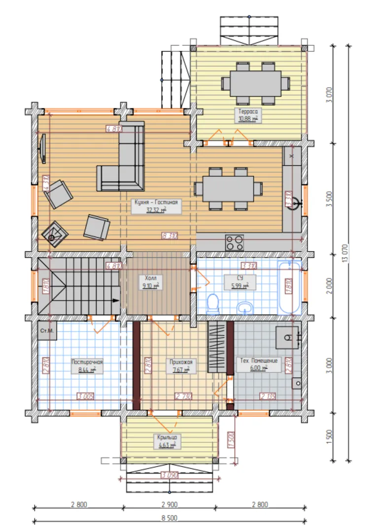 Заказать конусльтацию по:Загородный дом из клееного бруса «Эридан 2»