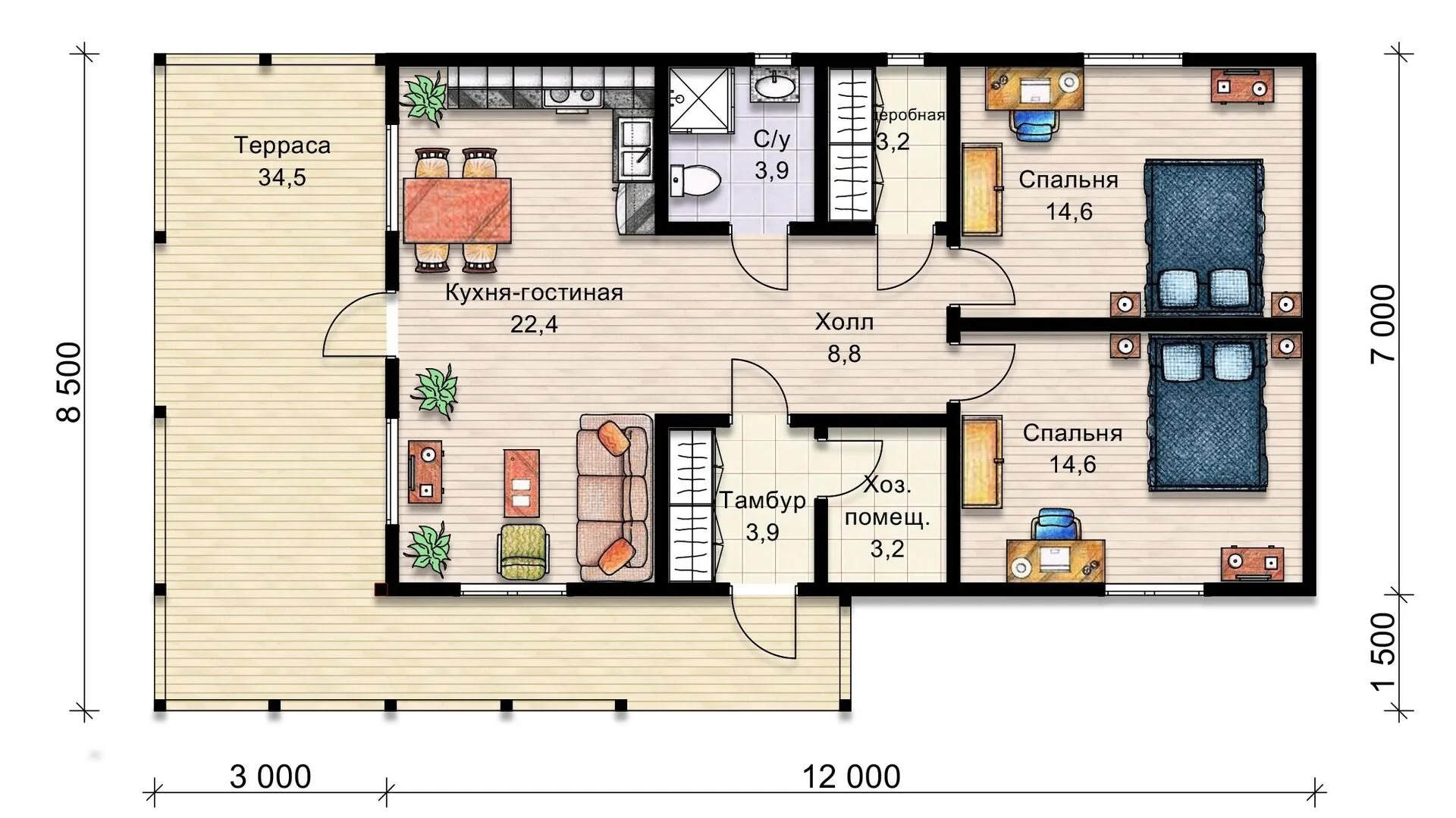 Площадь дома 74 м2