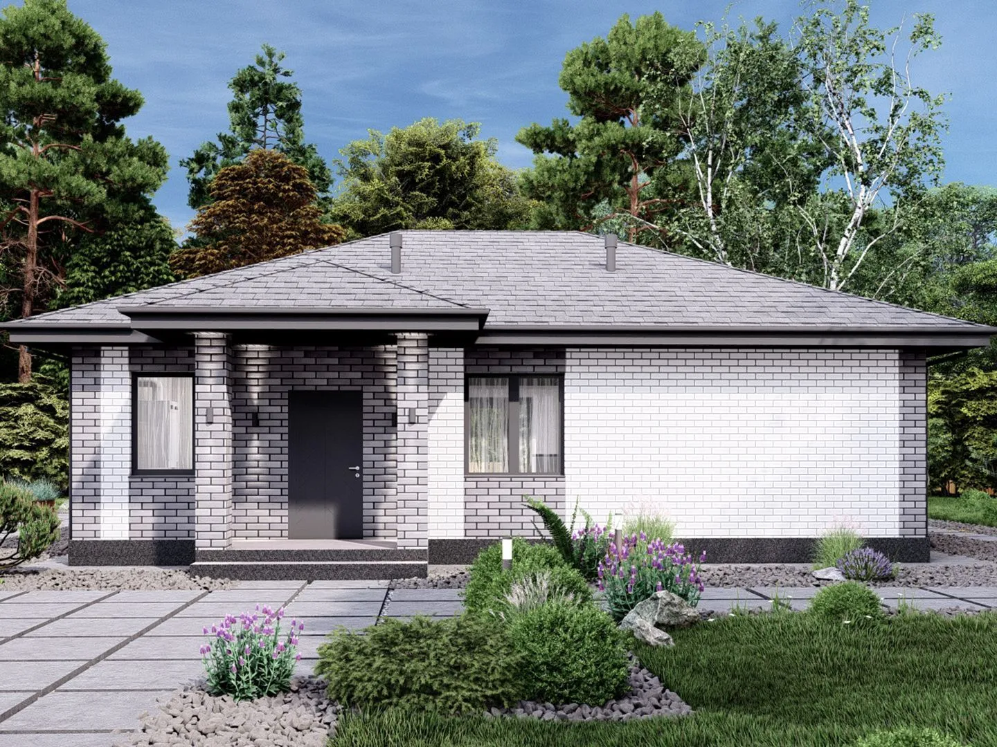 Загородный дом **«Киран»** – это не просто пространство, а уютный уголок, где каждая деталь продумана до мелочей. С площадью 83,73 м², одноэтажный корпус в классическом стиле создаёт ощущение простора и гармонии, а четыре скатные вальмовые крыши гарантируют надежность даже в самые суровые периоды года. Внутри дома сохраняется теплая атмосфера, благодаря высококачественным керамзитобетонным блокам, обеспечивающим изоляцию и долговечность. Дом построен с любовью к комфортному, круглогодичному проживанию: большие окна пропускают свет, а просторные комнаты располагают к созданию домашнего уюта. Отсутствие балконов, веранд и гаражей делает «Киран» настоящим убежищем от суеты – здесь вы сможете полностью погрузиться в природу и восстановить силы. Этот загородный дом сочетает в себе функциональность и эстетическую привлекательность, создавая идеальное место для тех, кто ценит простоту и традиционный классический стиль.