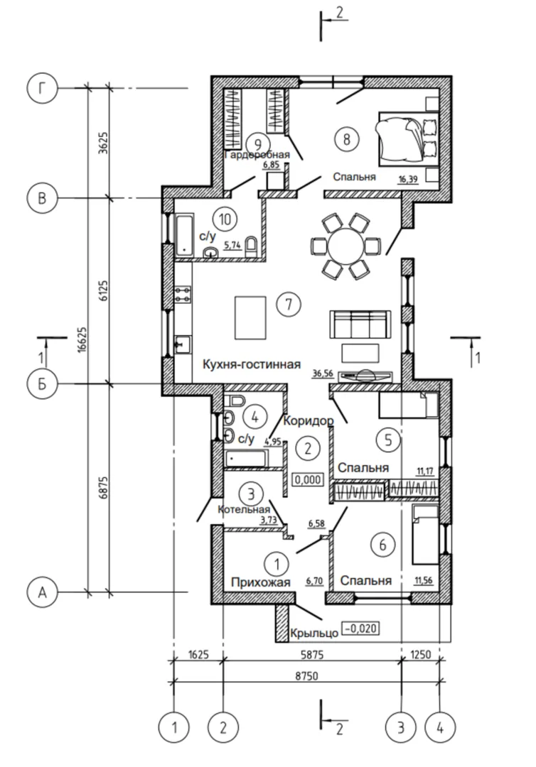 Одноэтажный дом FIXPLANS- 1232