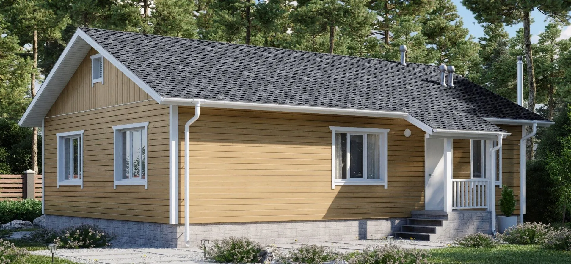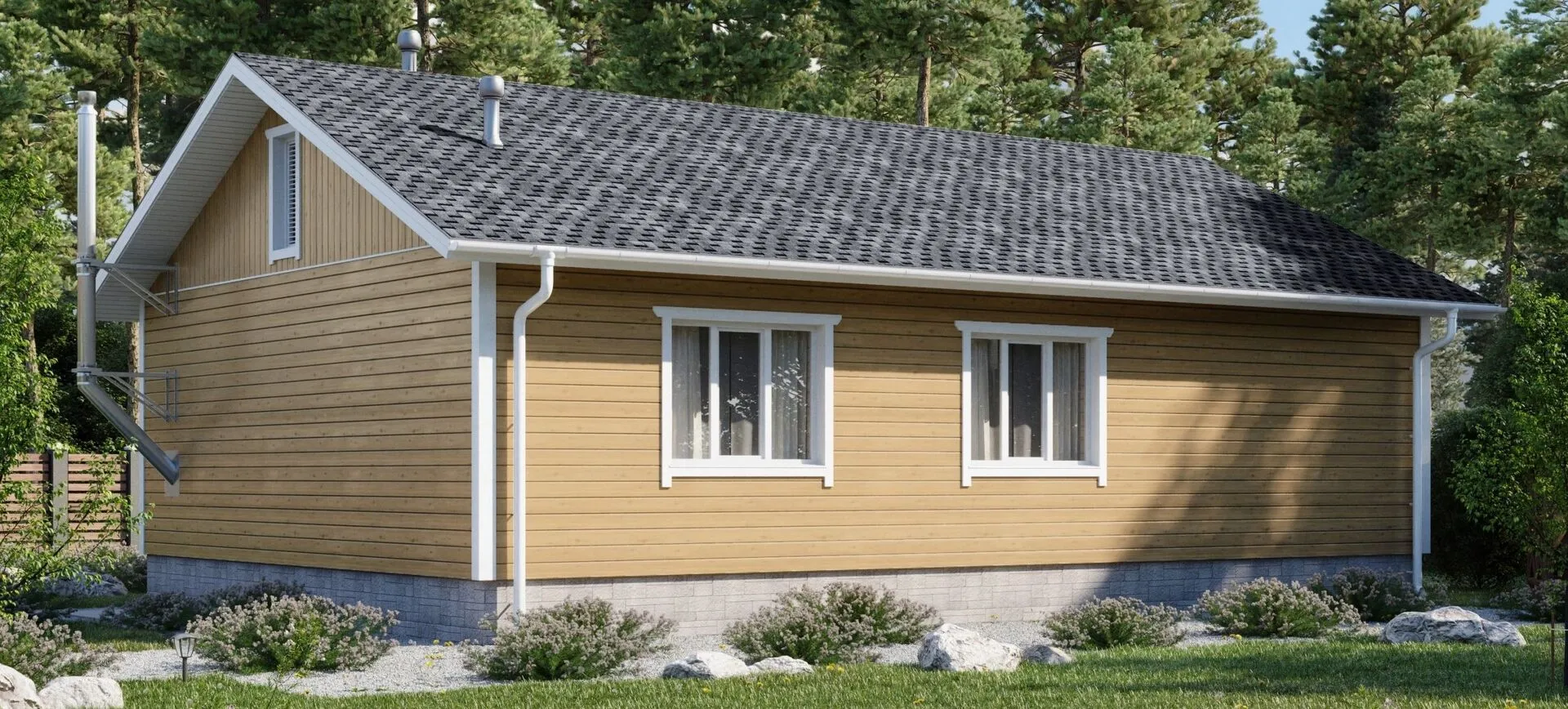 Уютный загородный дом 91 — это место, где каждая деталь создана так, чтобы дарить вам чувство дома уже с первых шагов. Его классический облик, выполненный в каркасно‑панельной технологии, придаёт свежесть и одновременно ощущение надёжности. Дом рассчитан на комфортное круглогодичное проживание: тёплый, яркий и защищённый от ветров и холода благодаря традиционной двускатной крыше, которая словно хранит в себе тепло от солнечных лучей. Вдали от городского шума вы почувствуете, как время замедляется, а в каждом коридоре и помещении витает умиротворение и простота. Главный плюс — это единственный надземный этаж, который делает жизнь в доме особенно удобной. В открытых и светлых комнатах пропитано спокойствие и уют: большие окна пропускают мягкий природный свет, придавая помещению живость и лёгкость. Просторные комнаты без балконов, веранды, лоджий остаются для тех, кто ценит чистоту форм и предпочитает отдых в закрытую часть дома, где можно насладиться ароматом домашних блюд или вечерним кофе за тёплым обрывком света от окна. Дом 91 – это сочетание практичности и эстетики. Нет лишних складных решений: отсутствуют пристройка гараж/крытая автостоянка, чердачное помещение, терраса — всё это освобождает пространство от ненужных перегибов и позволяет полностью сфокусироваться на уюте внутри. Он приглашает к беззаботной жизни с простыми удовольствиями, создавая атмосферу, где каждый день начинается с вдохновения, а заканчивается теплом и спокойствием. В нём вы найдёте своё маленькое, но уютное место, которое будет радовать вас и ваши близкие долгие годы.