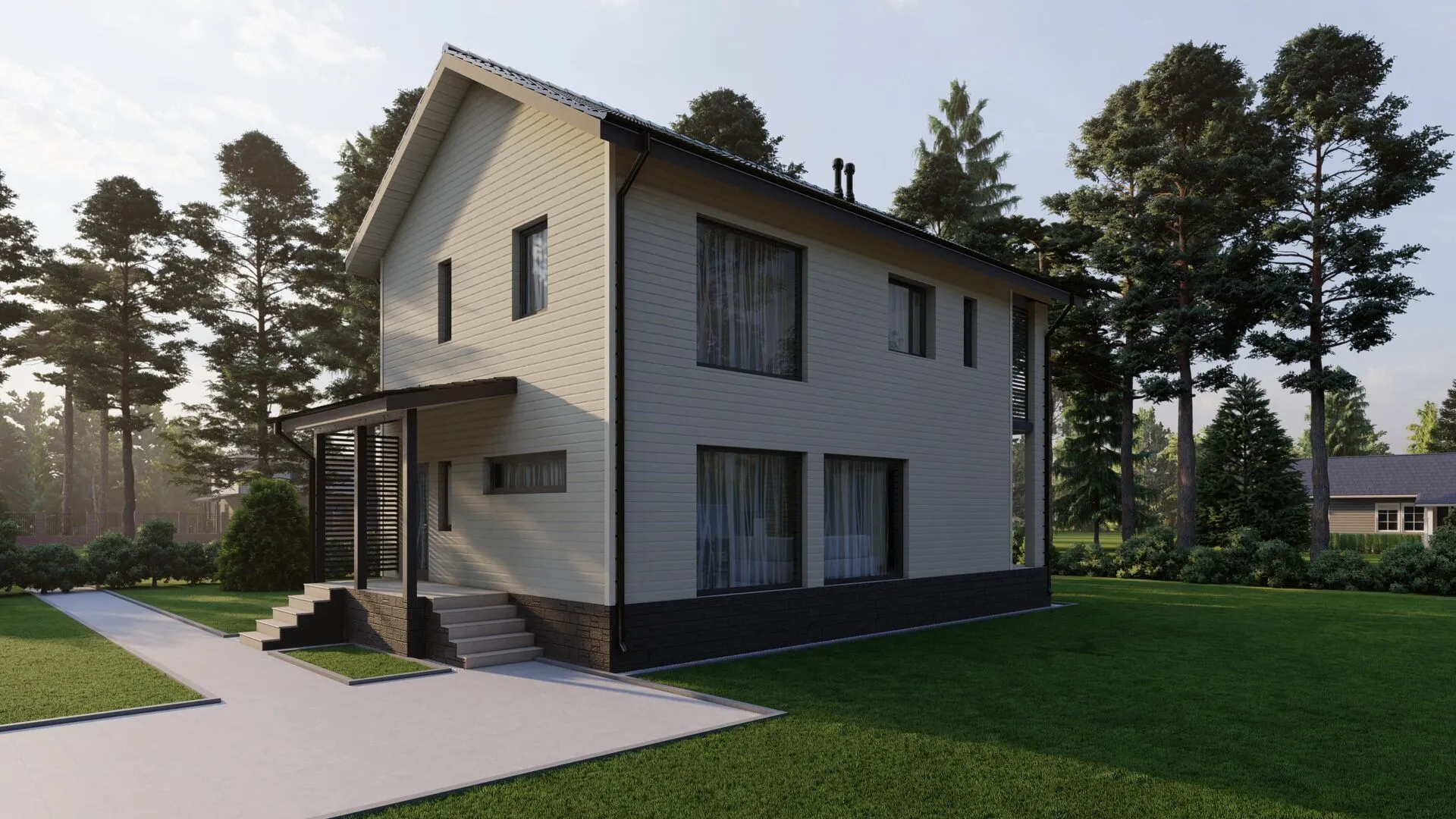 Прекрасный загородный дом ВС‑124 — это идеальный вариант для тех, кто ищет гармонию между уютом и стилем. Его европейская архитектура с элегантно скругленными линиями и двускатной крышей создаёт впечатление сказочного шато, но при этом в доме всё рассчитано на комфортную повседневную жизнь. Двухэтажная постройка с деревянным каркасом хранит тепло года за годом, позволяя наслаждаться уютом даже в холодные зимние вечера и яркой летней прохладой. Внутри ждут светлые, просторные помещения, где каждый элемент продуман до мелочей — от больших окон, пропускающих небо и лес, до аккуратного балкона, который станет вашим личным барбекю‑пунктом или уголком для чтения. Несмотря на отсутствие прицепного гаража, просторная автостоянка на прилегающем участке обеспечивает удобство и безопасность вашего автомобиля. Отсутствие чердачных помещений и веранд не меняет ощущения простора; наоборот, придает дому лаконичность и лёгкость. Дом ВС‑124 — это место, где каждая деталь подчёркивает тепло семейного очага и любовь к природе. Вы сможете сесть на уютную террасу, пусть и её нет, наблюдая рассветы и закаты, или устроить вечерний садовый барбекю у самого дома. Создайте здесь свою историю, где европейская красота и функциональность сливаются в одном гармоничном пространстве.