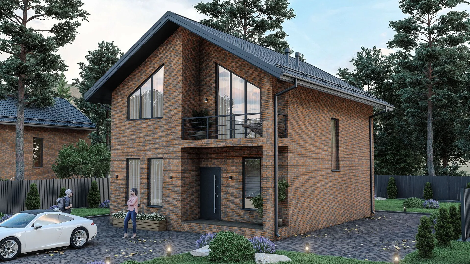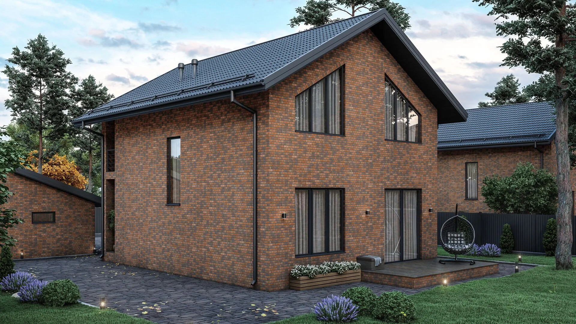 Загородный двухэтажный дом с облицовочным кирпичом