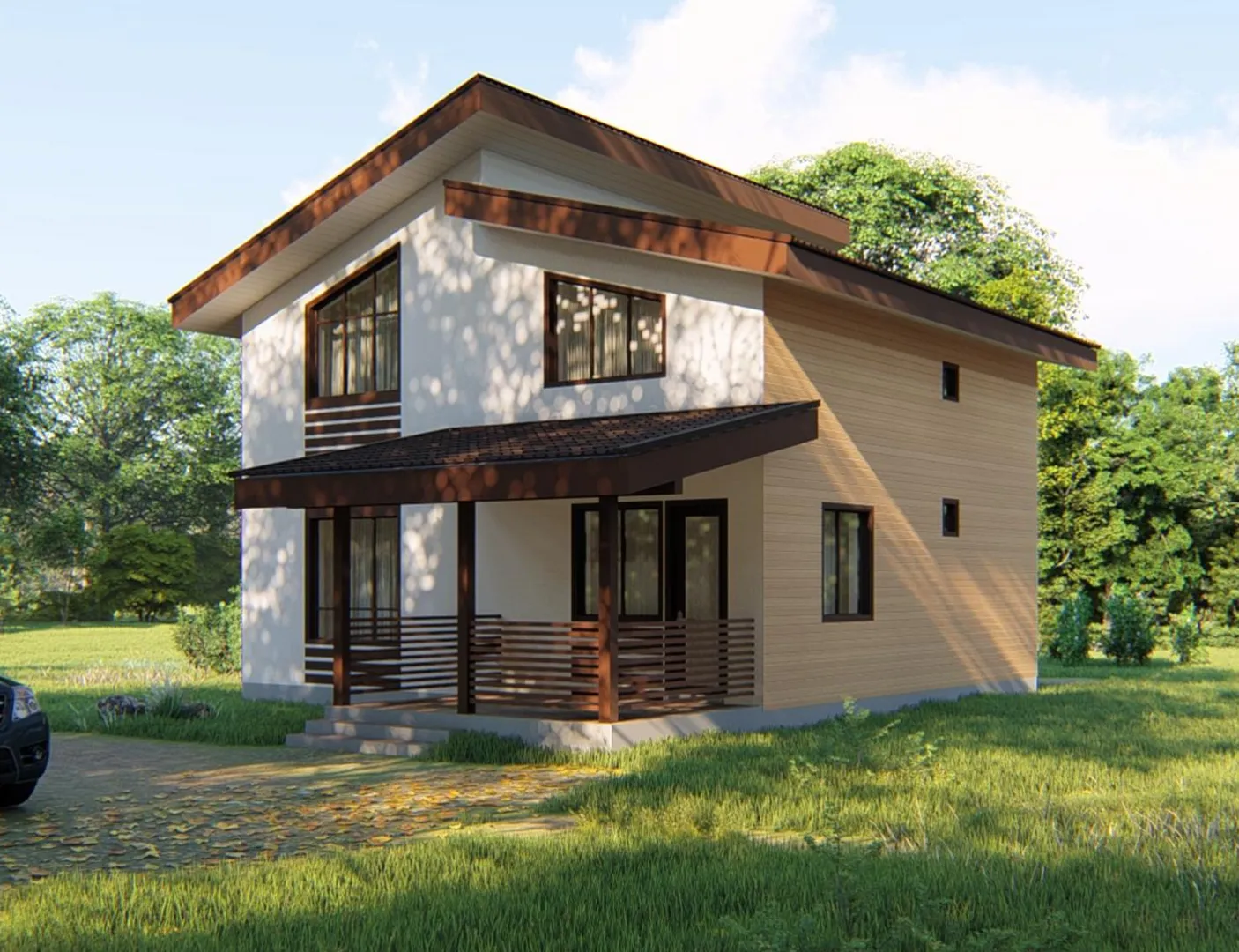Загородный каркасный дом для большой семьи 8,4х8,9 — 126 м²