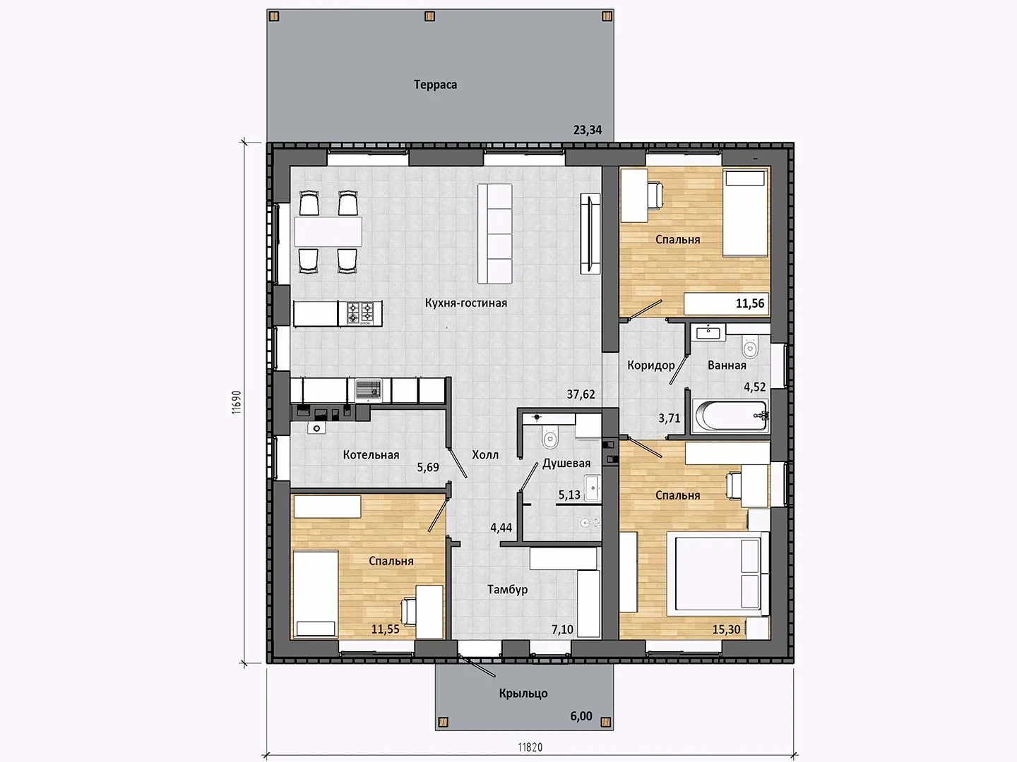 Заказать конусльтацию по:Загородный одноэтажный дом Comfort 106