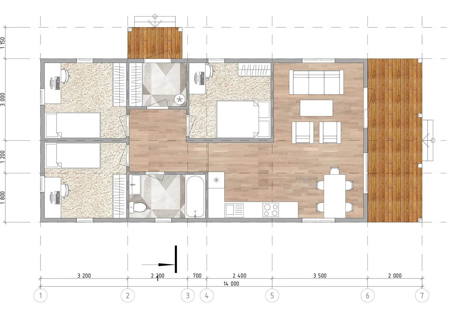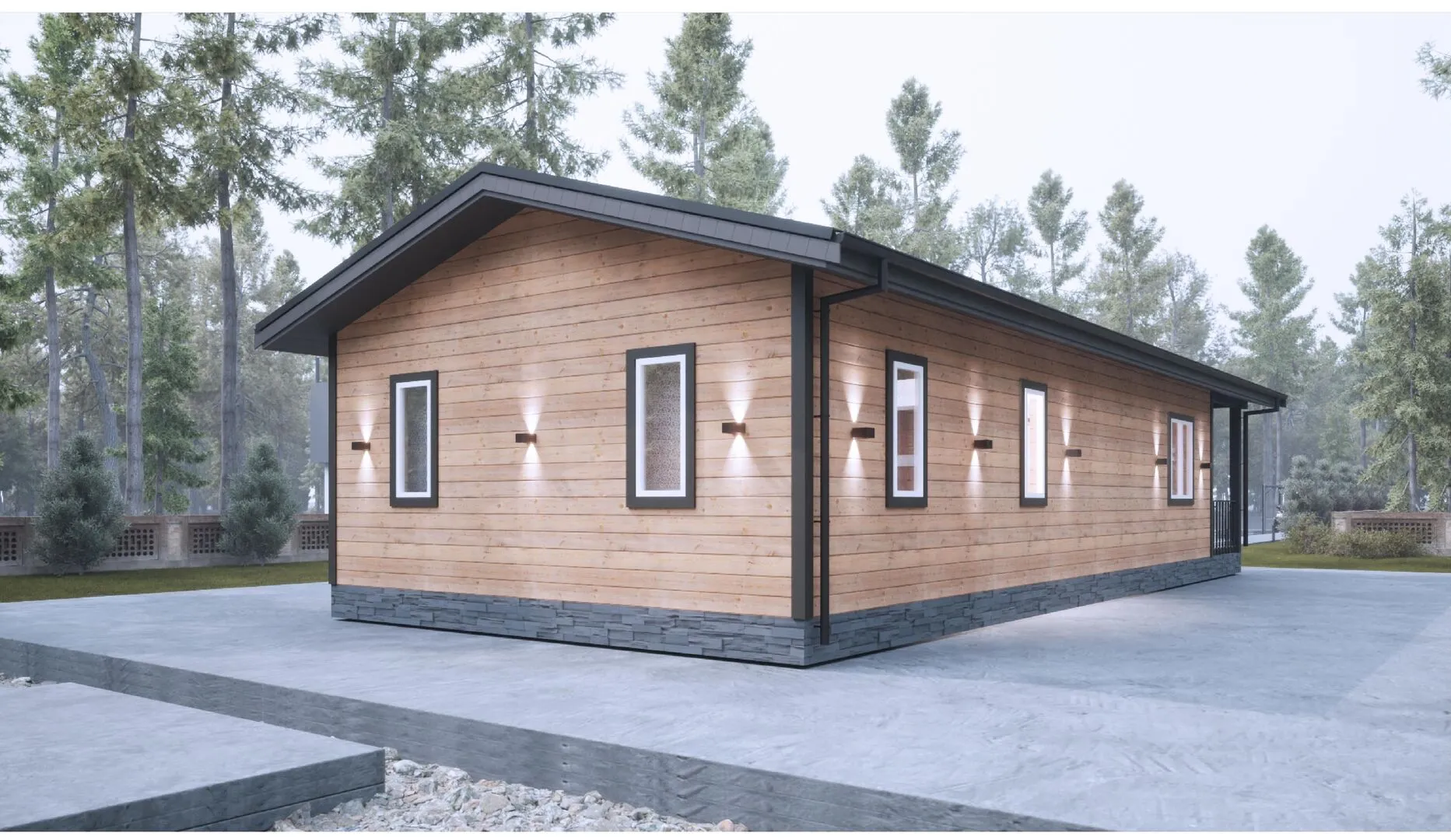 **Жилой Дом HIT – уют, тепло и стиль в одном объекте.** Первый надземный этаж этого обширного дома сделан в классическом барнхаус‑стиле, где элегантный деревянный каркас сочетается с двойной скатной крышей, создавая ощущение простора и природной гармонии. Дом спроектирован так, чтобы его можно было прекрасно обитаться круглый год: просторные комнаты, большие окна, притягвающее естественное освещение и тепло древесины делают каждый уголок уютым и гостеприимным. **Простор и комфорт без лишних сложностей.** Дом HIT не привлекает к себе внимание балконами, террасами или чердачными помещениями – он прост и функционален. Большая веранда предлагает вам место для спокойного отдыха на свежем воздухе, а отсутствие гаража упрощает организацию пространства. Весь дом обрамлен внешними деревянными стенами, которые излучают теплоту и экологичность, а двойная скатная крыша не только защищает от непогоды, но и добавляет архитектурной выразительности. Покупая этот дом, вы открываете дверь к спокойной, обустройной жизни, где каждая деталь продумана до мелочей, а простота – источник настоящего комфорта.