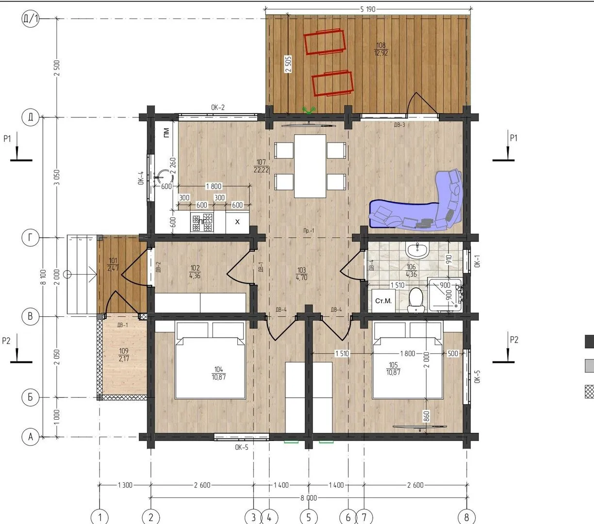 Площадь дома 59 м2