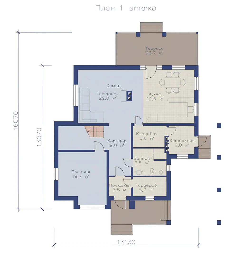 Одноэтажный дом из бруса СЕМЕЙНЫЙ