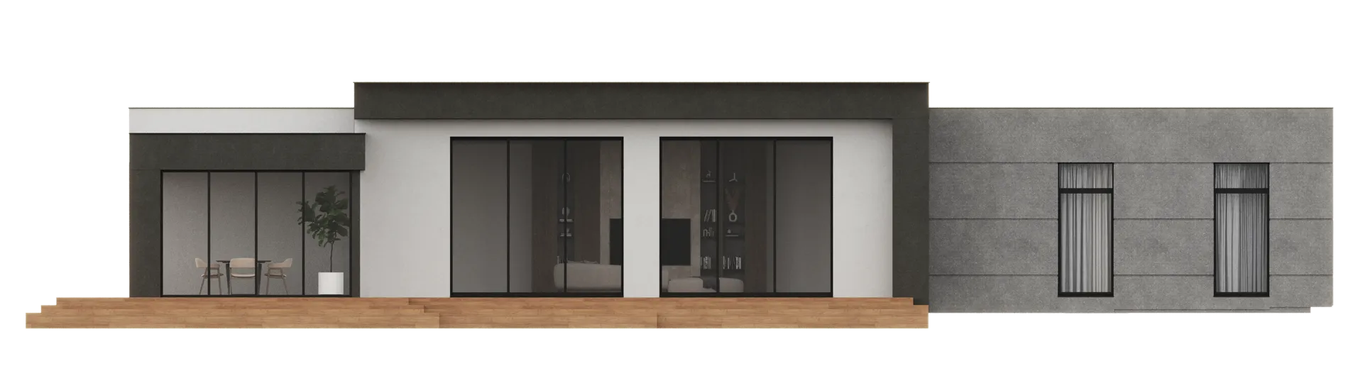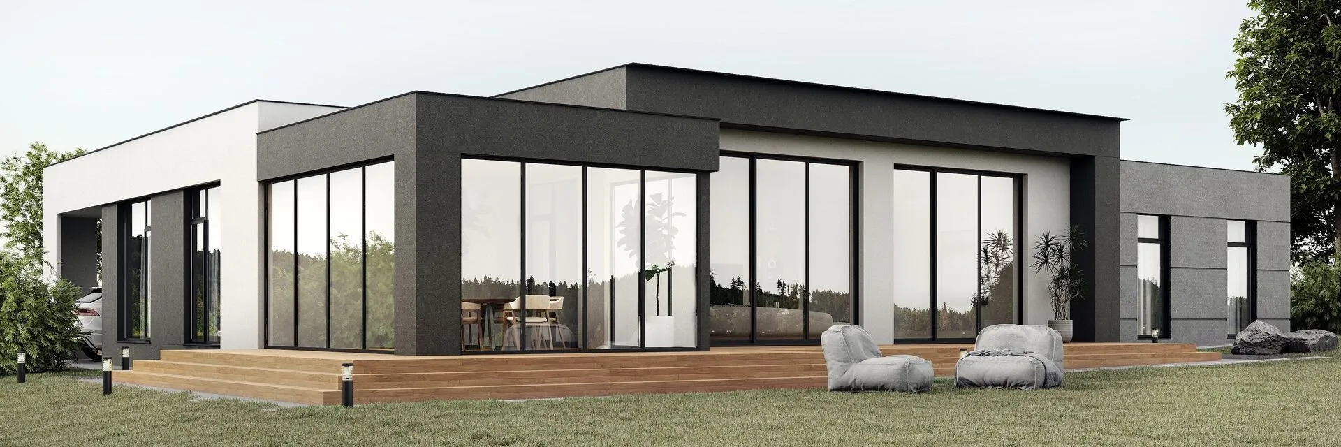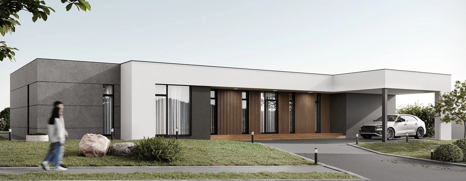 Объект, выполненный в стиле хай‑тек, сразу привлекает взгляд своей лаконичностью и продуманным дизайном. На первый взгляд его можно спутать с ультрасовременным кристальным шедевром, но в действительности он раскрывается как просторное, светлое убежище на одном уровне, где каждый элемент продуман до мелочей. Небольшой этаж, открытый план, бесшовные стеклянные фасады и плоская крыша создают ощущение бесконечного пространства и приглашают вам ощутить гармонию света и тишины. Качественный газобетонный материал обеспечит теплоизоляцию, энергоэффективность и комфортный микроклимат круглый год. Особое внимание стоит обратить на зонирование и функциональность: просторный внутренний дворик, оформленный как уютная терраса, станет вашим личным оазисом, идеальным для завтраков на открытом воздухе, вечерних посиделок с друзьями или тихих мгновений чтения книги. В отличие от типичных панельных домов, здесь отсутствуют балконы, веранда и чердачное помещение, что подчёркивает чистую архитектуру и способствует сохранению теплоизоляции. Плоская крыша и минималистичный стиль делают этот дом не только современной находкой, но и долгосрочным инвестиционным вложением. Такой выбор гарантирует идеальное сочетание эстетики, комфорта и практичности: открытая планировка, отсутствие лишних деталей и простота обслуживания делают этот дом идеальным для тех, кто ценит современный комфорт в гармонии с природой и желает жить в уюте, не жертвуя стилем. Приглашаем вас открыть для себя новый уровень жизни в этом уникальном проекте!