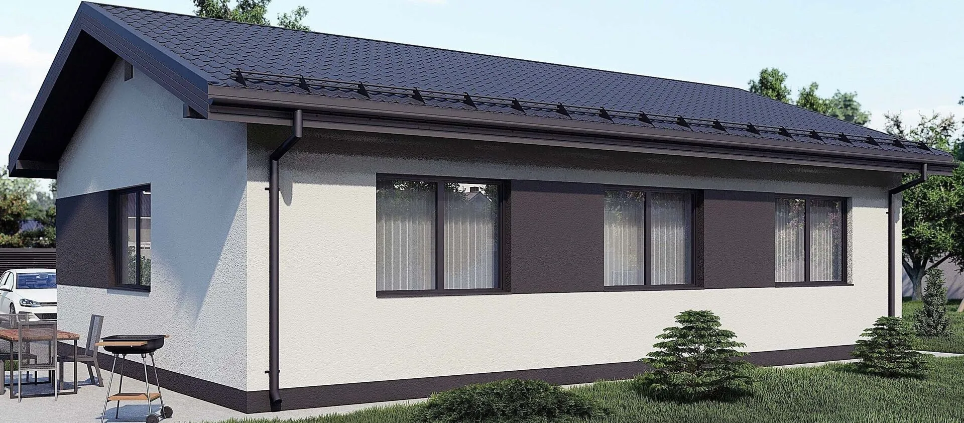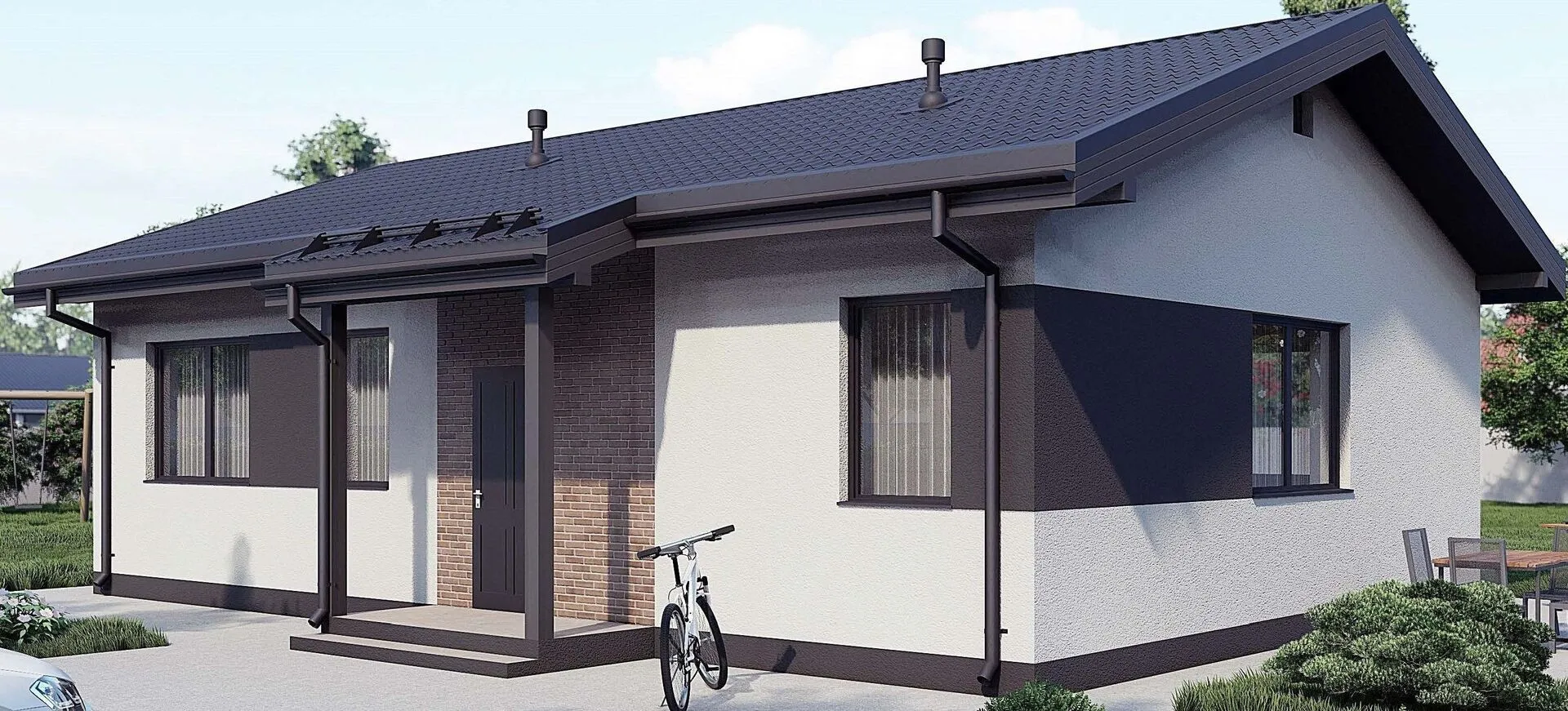 Выбирая дом, вы ищете комфорт, надёжность и эстетическую гармонию. Дом из серии АС‑2465 сочетает в себе неприхотливую практичность с утонченным классическим стилем. Одноэтажный, он открывает непрерывный жизненный цикл, обеспечивая круглогодичную пригодность для жизни даже в самых суровых климатических условиях. Внешняя стена из Арболита – современного высокопрочного материала, способного сохранять тепло и защищать от влаги, при этом придавая фасаду элегантный, но в то же время спокойный вид. Двускатная крыша не только подчёркивает классический облик, но и эффективно отводит дождь и снег, сохраняя тепло внутри дома. Внутреннее пространство проектируется так, чтобы каждый уголок был максимально функционален, а при этом поддерживать безмятежность и уют. Стены из натуральных материалов создают тепло, а разрастание света внутри делает любой день особенным. Отсутствие балконов, лоджий и веранд не только упрощает обслуживание, но и подчёркивает строгую элегантность дизайна, позволяя сосредоточиться на том, что действительно важно – создайте свой собственный уголок умиротворения. Дом АС‑2465 – это современный и надёжный вариант для тех, кто ценит качество строительства, внимание к деталям и готов к спокойной, беззаботной жизни в гармонии с природой. Приглашаем открыть для себя исключительный комфорт, который ваш новый дом может предложить.