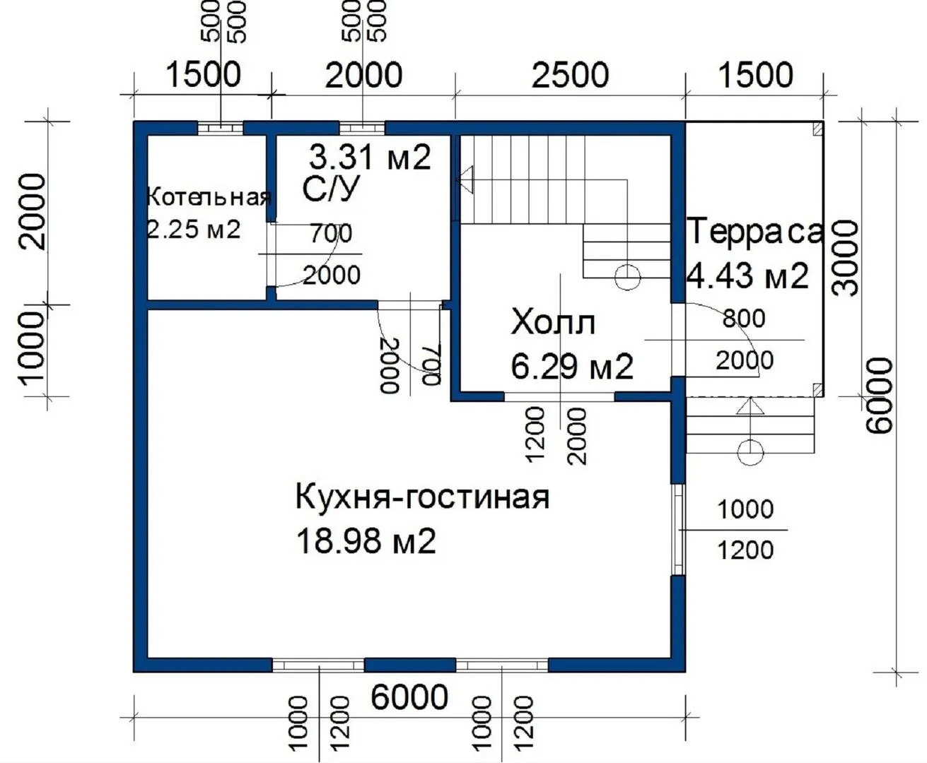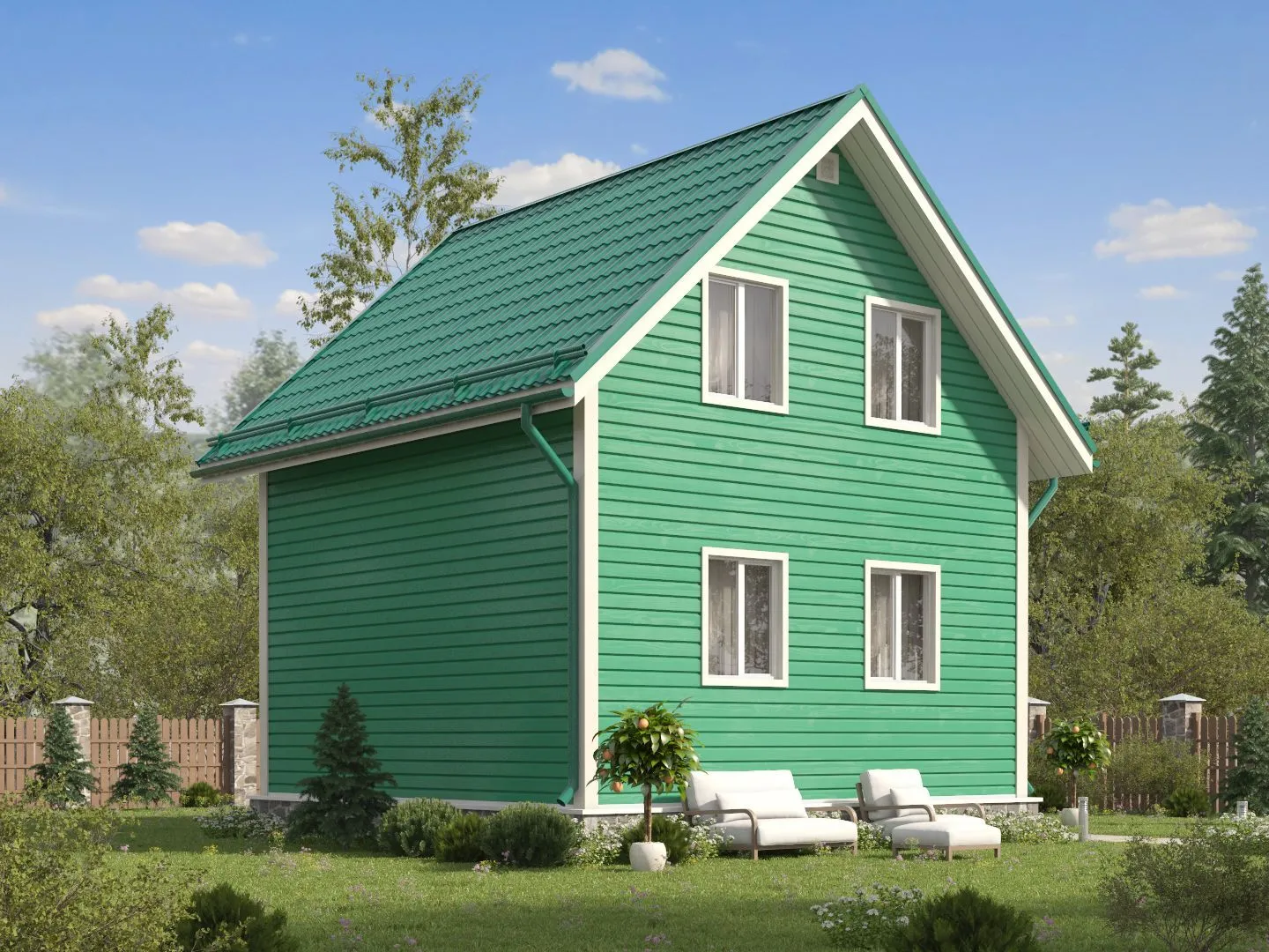 D8: Полутораэтажный загородный дом 6х6 с террасой 1.5х3