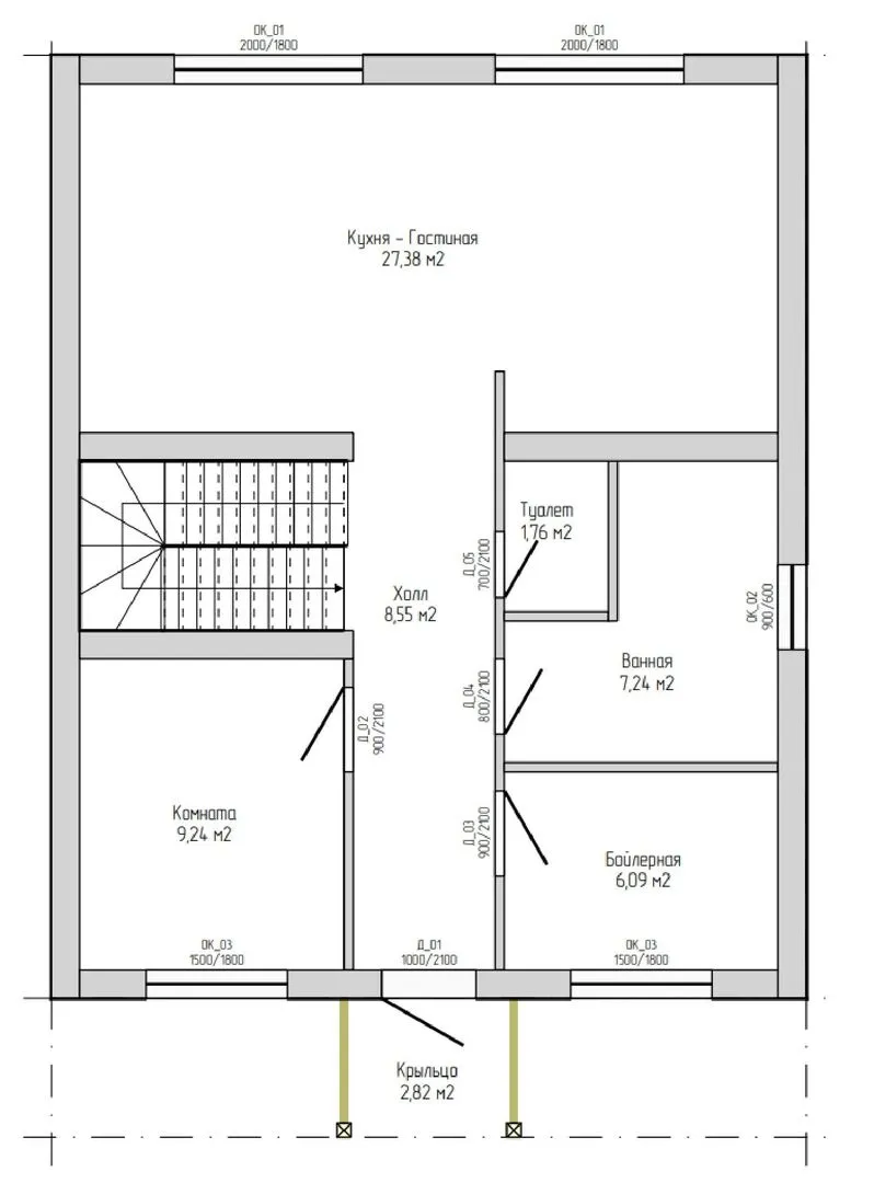 Дом из бруса 8 на 8,5 в два этажа с террасой и балконом