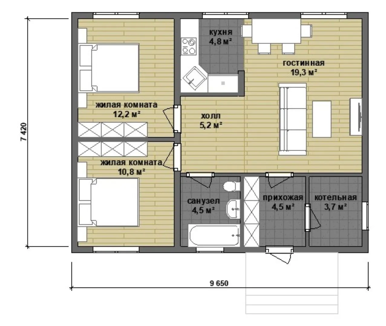 Заказать конусльтацию по:Дом 65 м2, 1 этаж