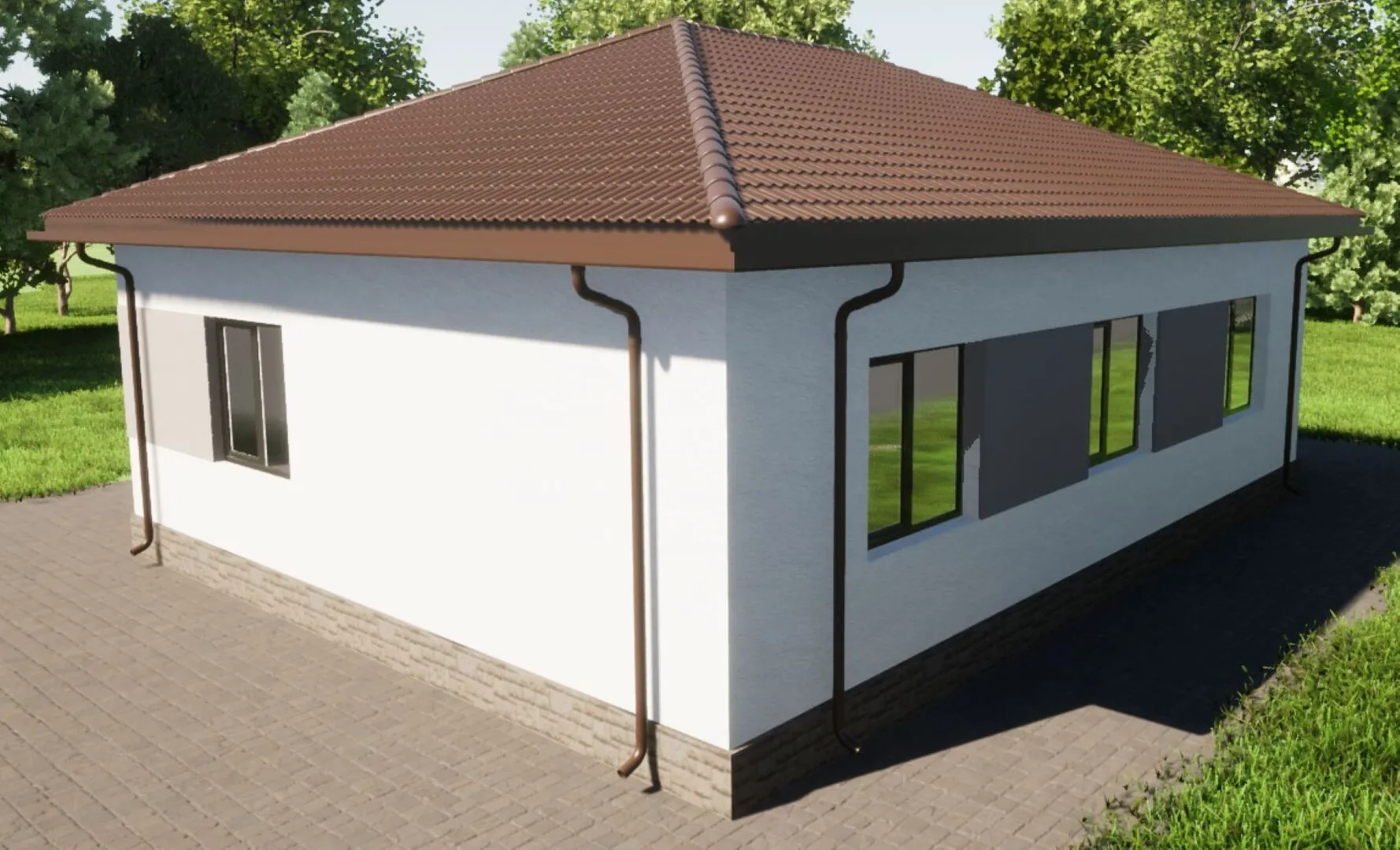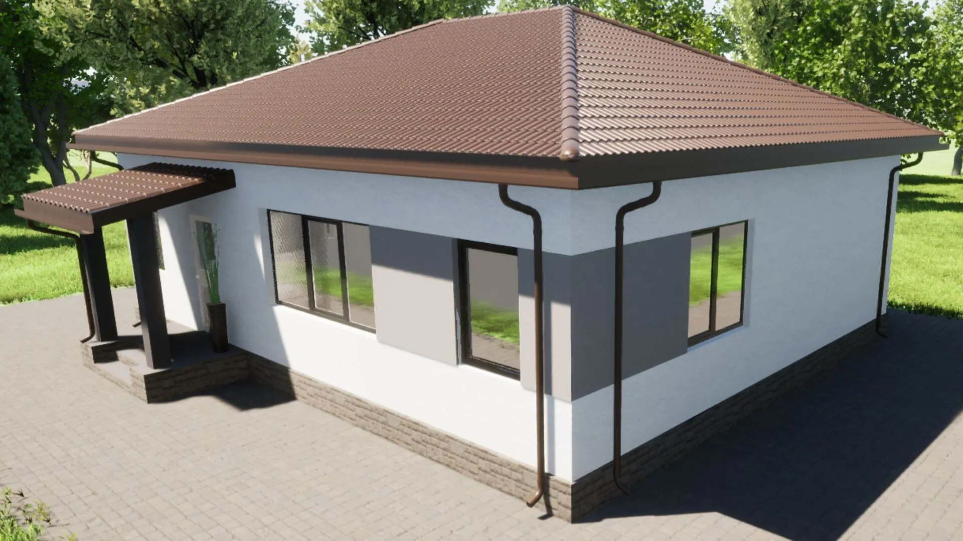 Великолепный одноэтажный дом площадью 82 м² воплощает в себе истинную европейскую элегантность. Его облик придает строгий, но в то же время уютный фасад из керамзитобетонных блоков, покрытый традиционным чередованием светлых и тёмных оттенков. Кровля, выполненная в четырёхскатном стиле с вальмовой деталировкой, не только защищает, но и придаёт зданию характерный очаровательный силуэт. Дом спроектирован как жилое пространство круглый год, обеспечивая мягкую теплоизоляцию и комфорт даже в самые холодные зимы. Внутри вас ждёт просторная, светлая планировка, где каждая комната пропитана теплом и благополучием. Главный зал – это место, где живёт душа дома: здесь большие окна впускают к себе солнечный луч, создавая атмосферу тепла и приглашая к отдых. Кухня-столовая с современными бытовыми приборами и открытой кухонной зоной позволяет готовить и наслаждаться едой одновременно. Окружённые камином уютные спальни гарантируют спокойный сон, а барная зона с просторным столом дарит возможность встречать гостей в приятной, камерной обстановке. Для владельцев, ценящих практичность, в доме предусмотрено чердачное помещение, которое можно использовать как склад, гардеробную или даже создать уютный уголок для творчестве. Отсутствие балконов и веранд, но наличие просторных открытых пространств внутри, создаёт ощущение единства с природой и позволяет наслаждаться свежим воздухом даже в закрытом пространстве. Эта квартира – идеальное сочетание европейского стиля, функциональности и практичного подхода к жизни, предлагая всем, кто ищет дом, где можно почувствовать себя дома уже с первой минуты.
