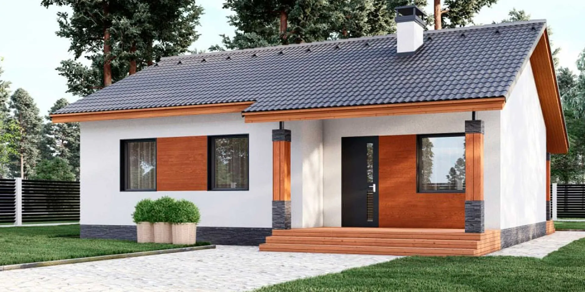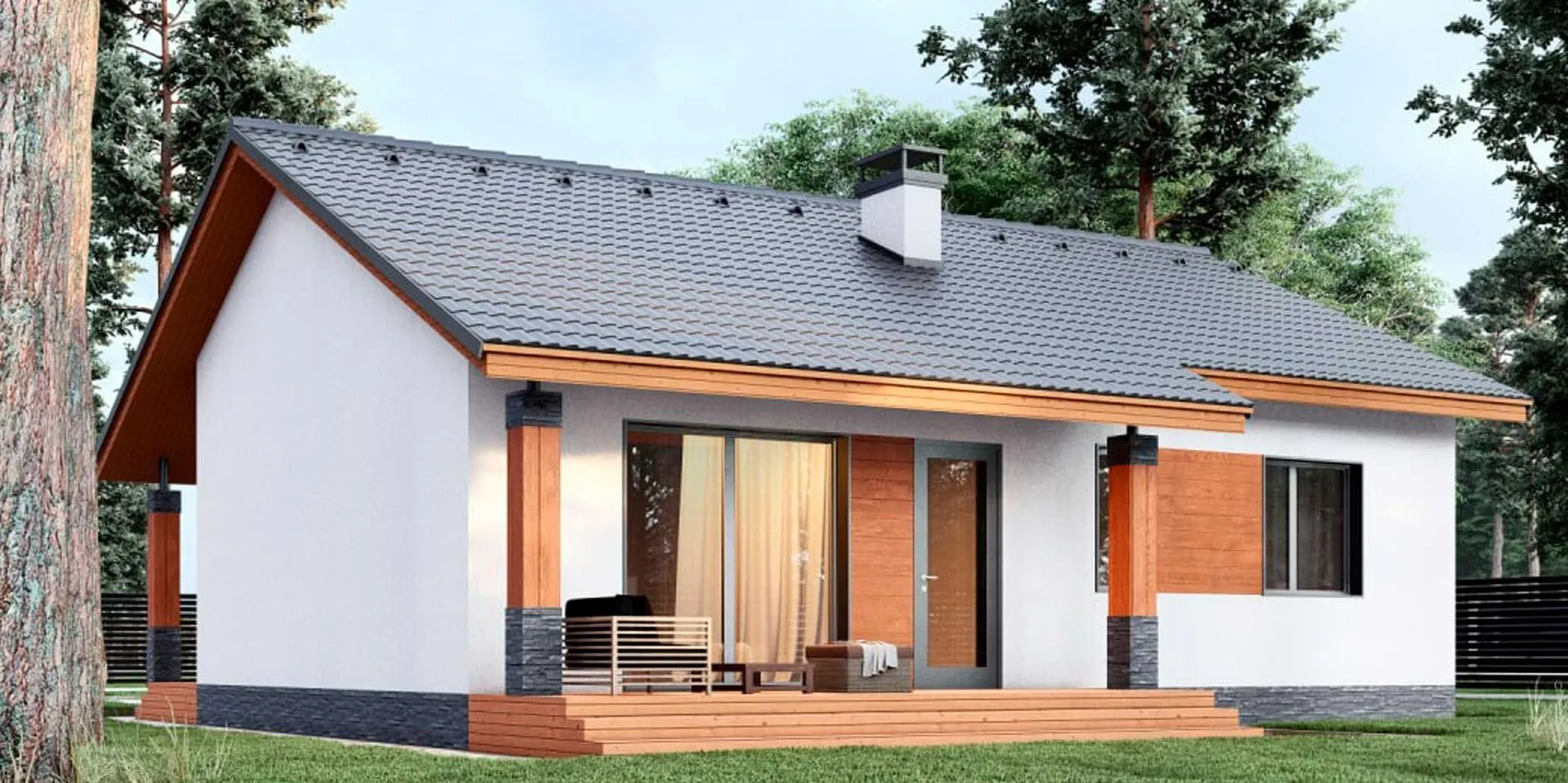 Дом из арболита с террасой одноэтажный