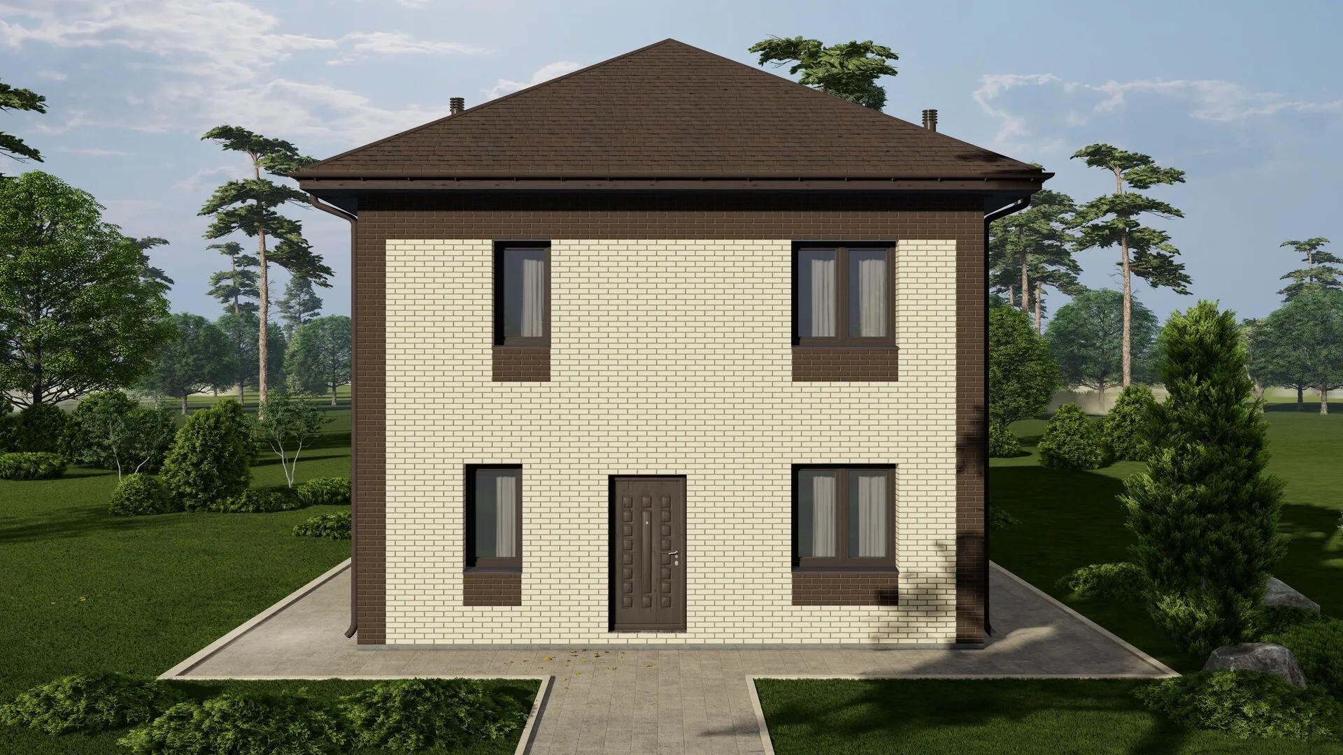 **Уникальный дом‑сочетание элегантности и надёжности** Этот кирпичный дом S053 ― настоящий шедевр классической архитектуры, созданный для круглогодичного комфорта. Два надземных этажа обеспечивают достаточно пространства, чтобы разпланировать удобные зоны для семейной жизни: светлые спальни, просторная гостиная, уютная кухня‑обеденный зал. Стройка из газобетонных блоков не только гарантирует отличную тепло‑ и звукоизоляцию, но и повышает долговечность конструкции, позволяя сэкономить на ремонтах и обслуживании. **Стиль, практичность и безмятежность** Внешний вид дома сохраняет изысканность классического стиля: строгие фронтоны, симметричные окна, аккуратные фасады. Четырехскатная кровля выполнена из качественной валмовой черепицы, защищая от непогоды и добавляя интерьеру благородного характера. В доме нет балконов, лоджий, веранд, автостоянок и чердачных помещений, что делает его компактным и одновременно функциональным. Здесь вы найдёте тихое убежище от городского шума, где каждый уголок вписан в уют и спокойствие. Наслаждайтесь комфортом и эстетикой в доме, где каждая деталь продумана для вашего благополучия.