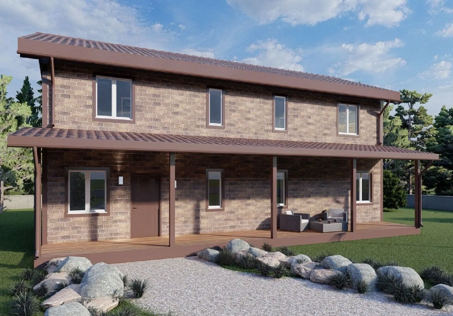 Представляем вашему вниманию изысканный двухэтажный дом ES‑252 — воплощение классических идей в современной архитектурной форме. Уже при первом взгляде хочется почувствовать, что здесь каждый уголок продуман с душой: строгая геометрия фасада, плавные переходы от окна к окну, а на крыше в виде гармоничной двускатной линии создается ощущение уюта и стабильности. Благодаря материалу внешних стен — SIP‑панелям, ваш новый дом будет не только эстетически привлекательным, но и экономичным, ведь такой вид утепления гарантирует отличную тепло- и шумоизоляцию, а значит и круглогодичную комфортную жизнь. Через открытую площадку – просторную террасу, где можно наслаждаться закатами, устраивать романтические встречи и просто отдыхать на свежем воздухе, вы будете наслаждаться природой, а при этом не упустите преимущества современной планировки. Внутренний план дома предусматривает свободные, светлые пространства, где каждая стена пронизана естественным светом благодаря аккуратному расположению окон. Просторные коридоры и функционально распределённые комнаты создают ощущение простора и свободы, а классический декор придаст вашему дому неповторимый характер. Дом ES‑252 подходит для тех, кто ценит сочетание традиций и современных технологий. Его износостойкие материалы, простая в обслуживании конструкция и продуманные внутренние детали делают этот дом идеальной опцией для семьи, ищущей надёжный, комфортный и в то же время элегантный домашний уголок. Выйдите из привычных рамок и окунитесь в атмосферу гармонии и уюта, которую только классический дом с отличной инфраструктурой способен предложить.