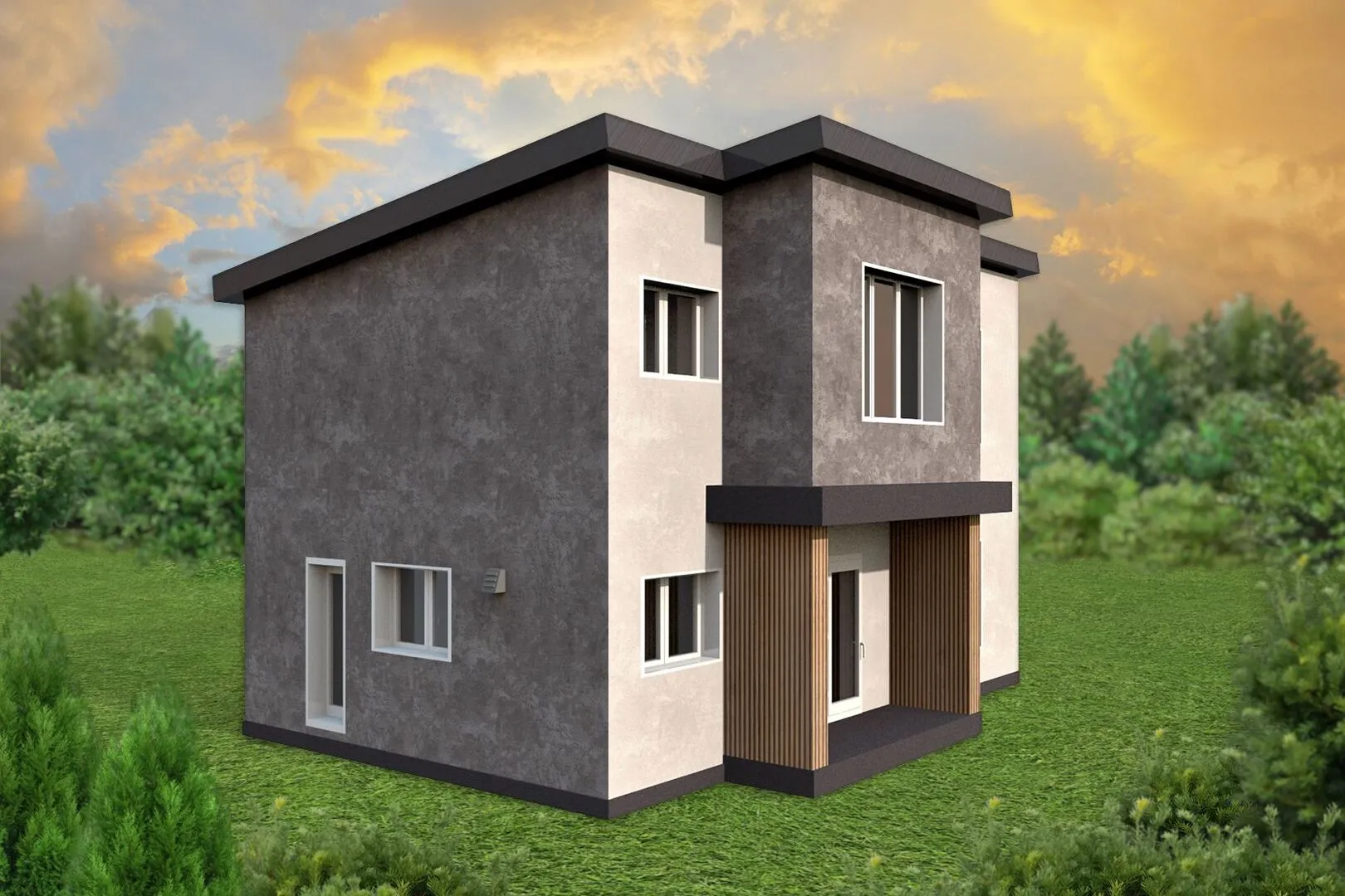 Заказать конусльтацию по:Двухэтажный дом из арболита- 101 м2,- 4 спальни, 2 с.у.-Ельдигино