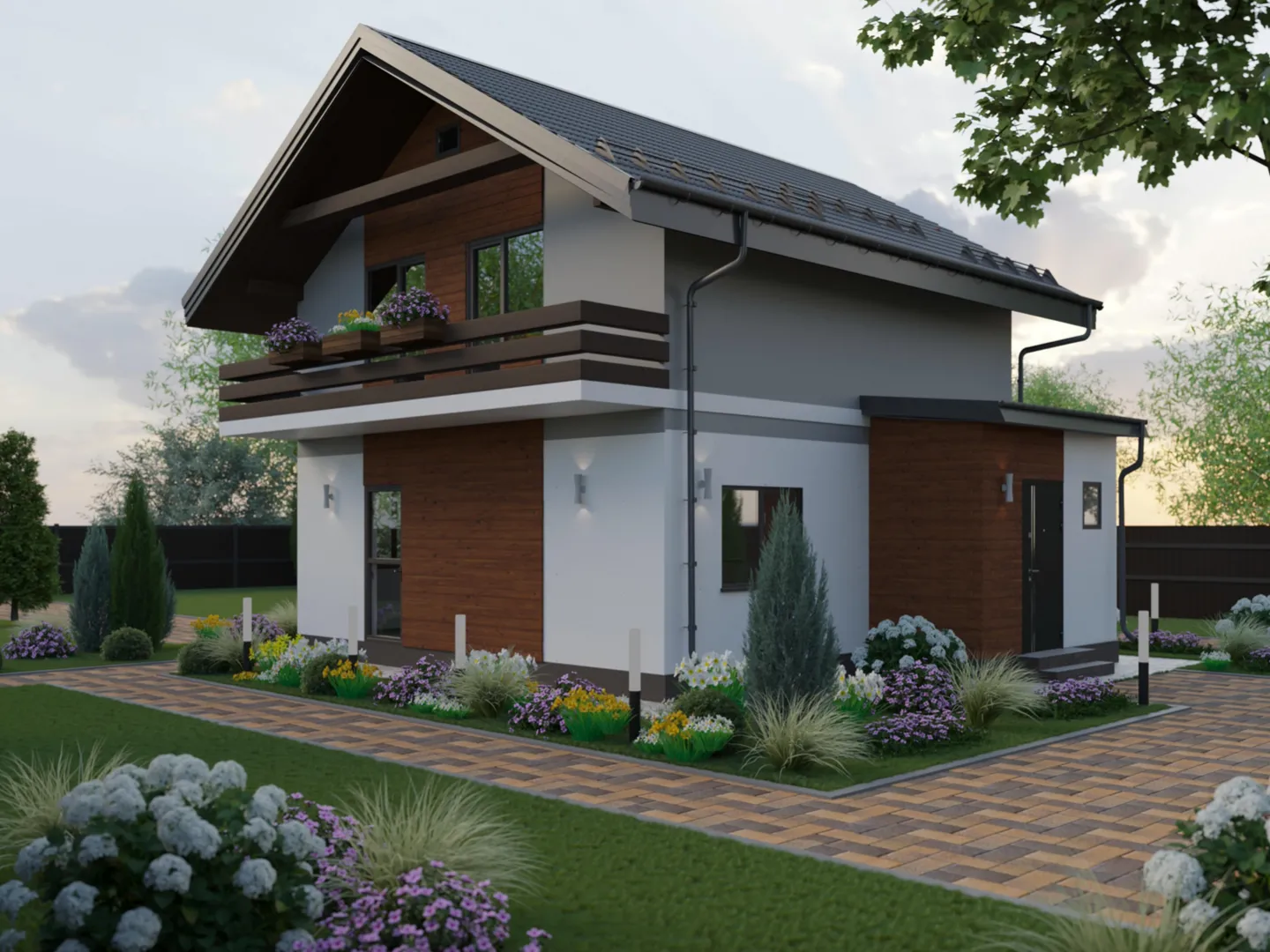 Двухэтажный дом с балконом м-112