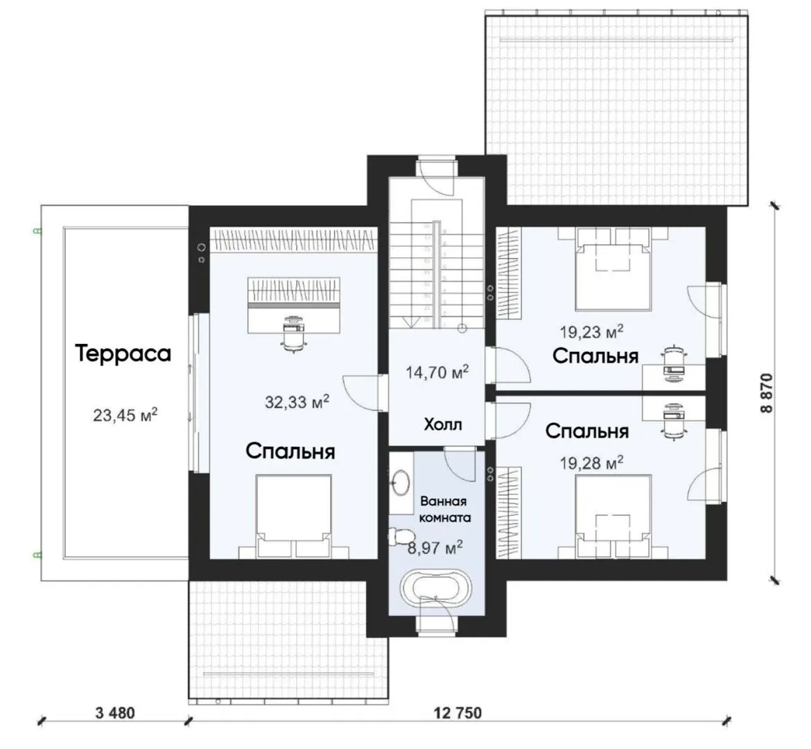 Заказать конусльтацию по:Двухэтажный дом с четырьмя спальнями S-204