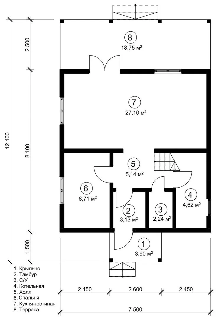 Заказать конусльтацию по:Двухэтажный дом с террасой 68-23КД