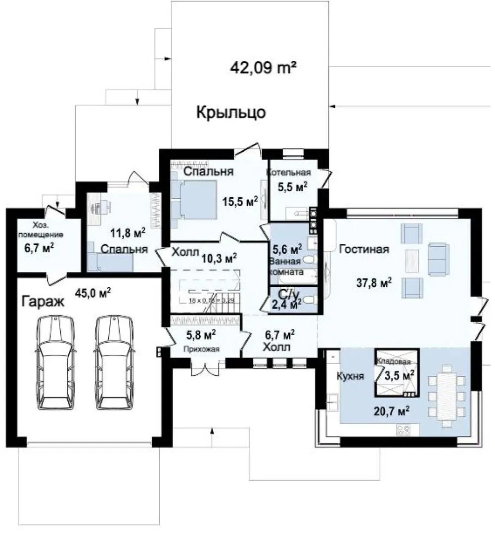 Двухэтажный дом с верхней террасой и большим гаражом S3-278 (Zx22)