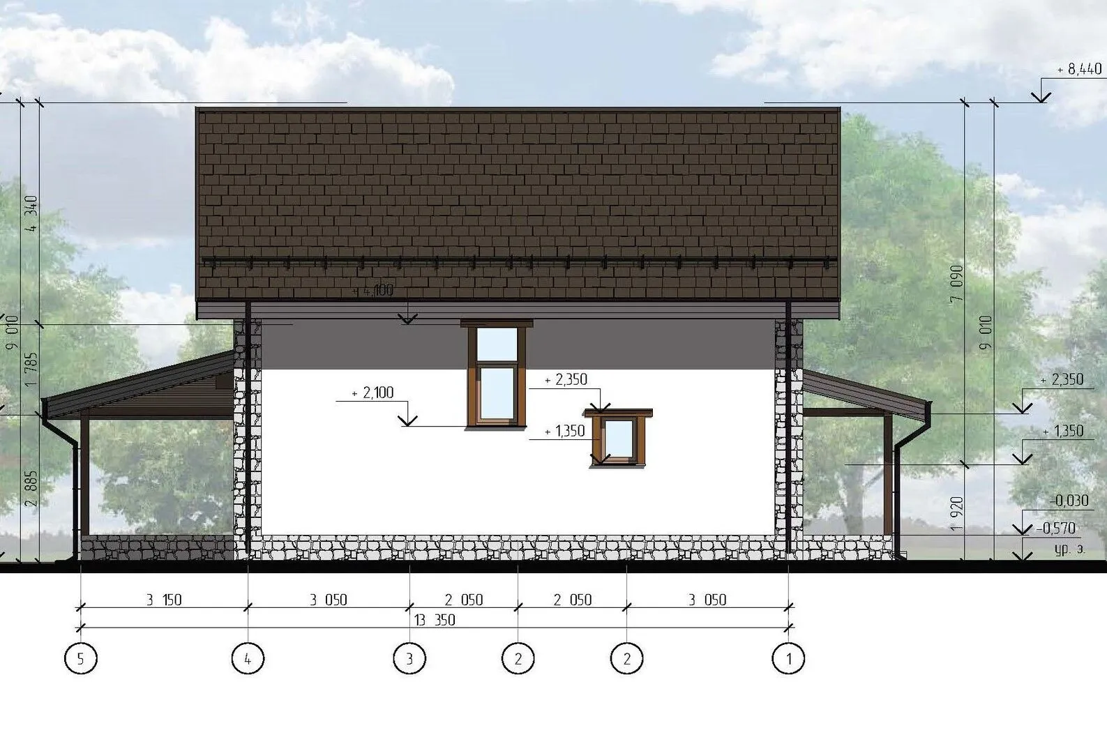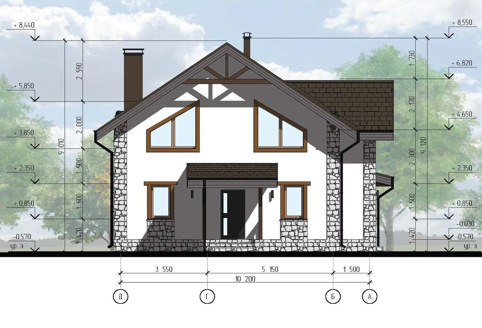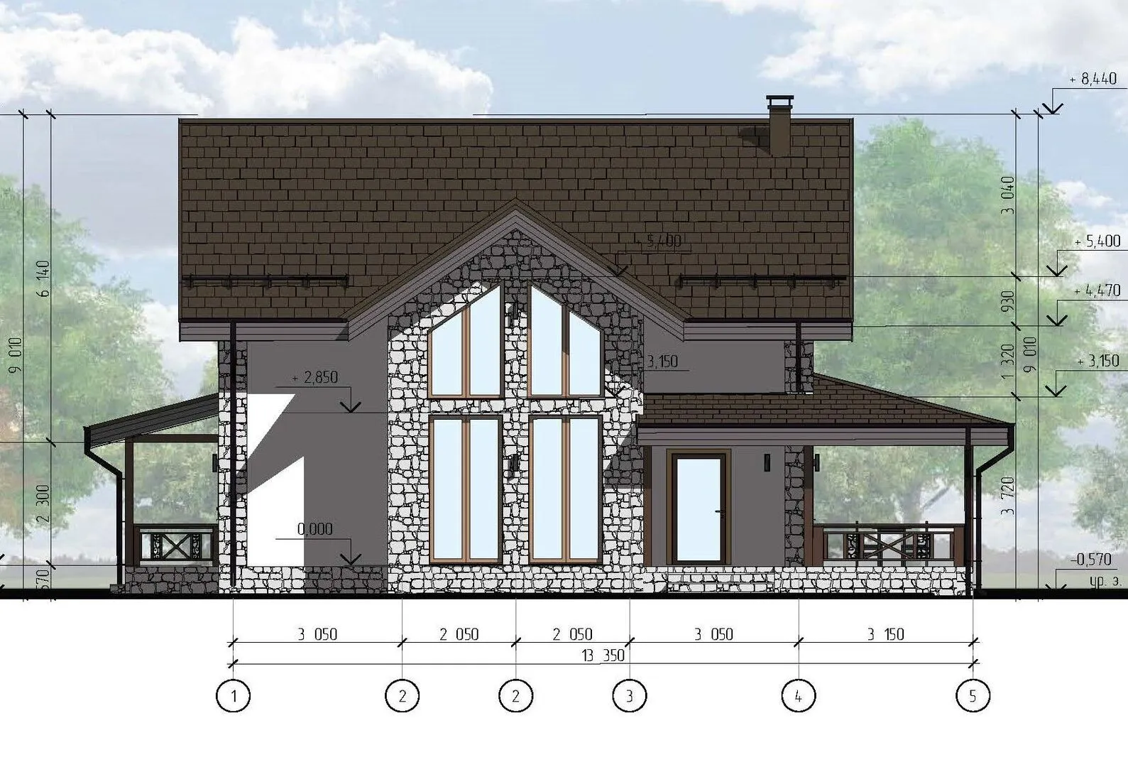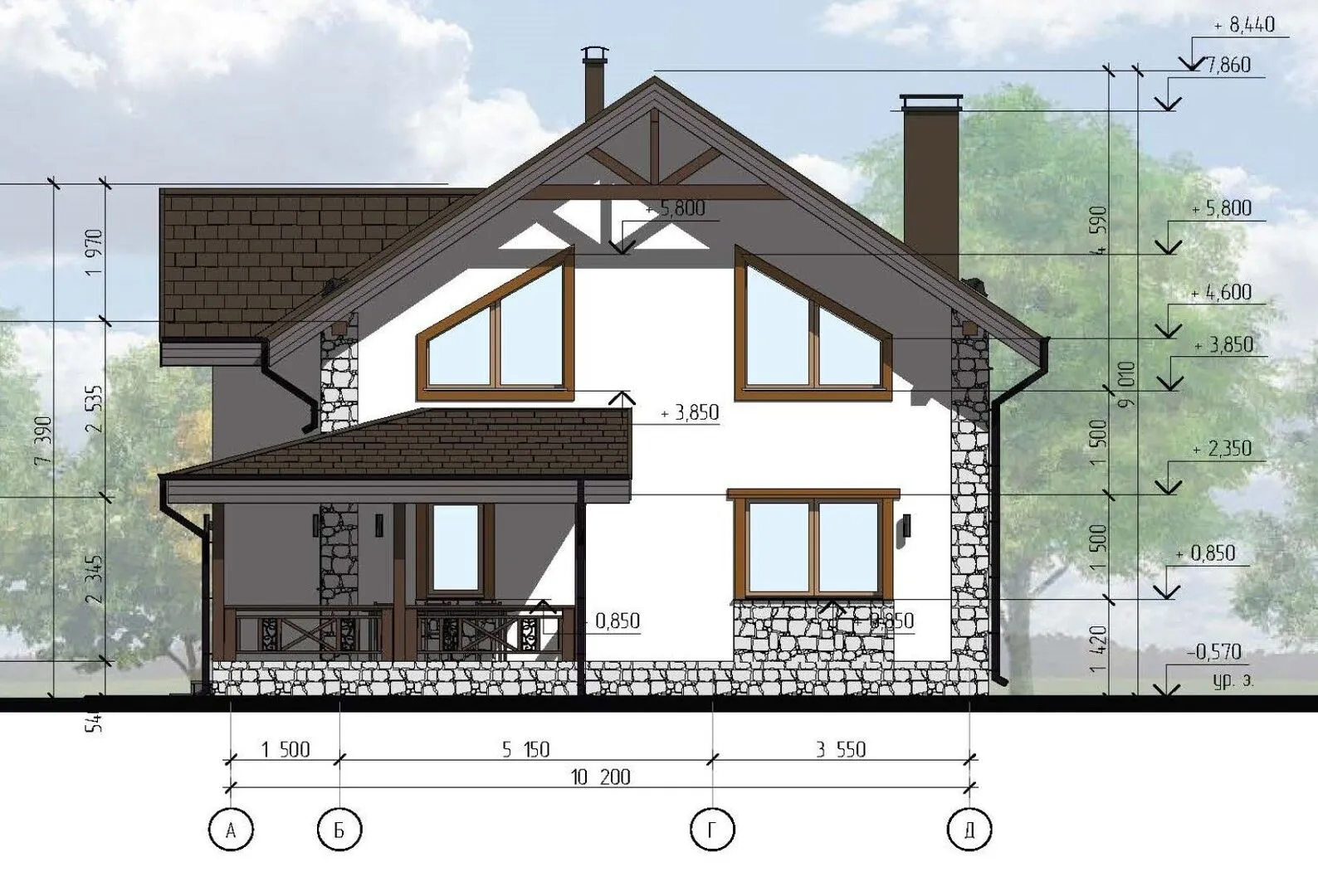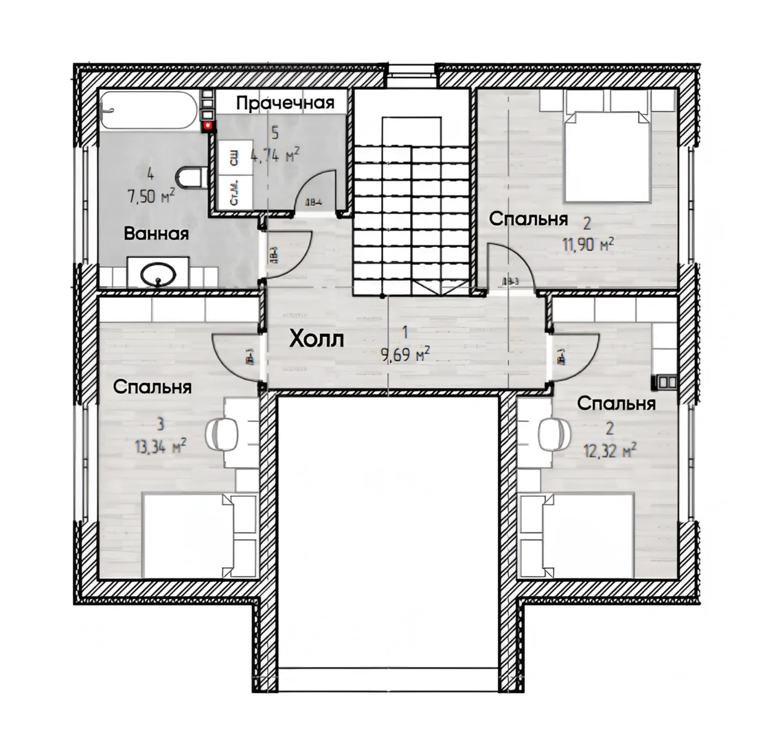 Двухэтажный дом со вторым светом и террасой S-143