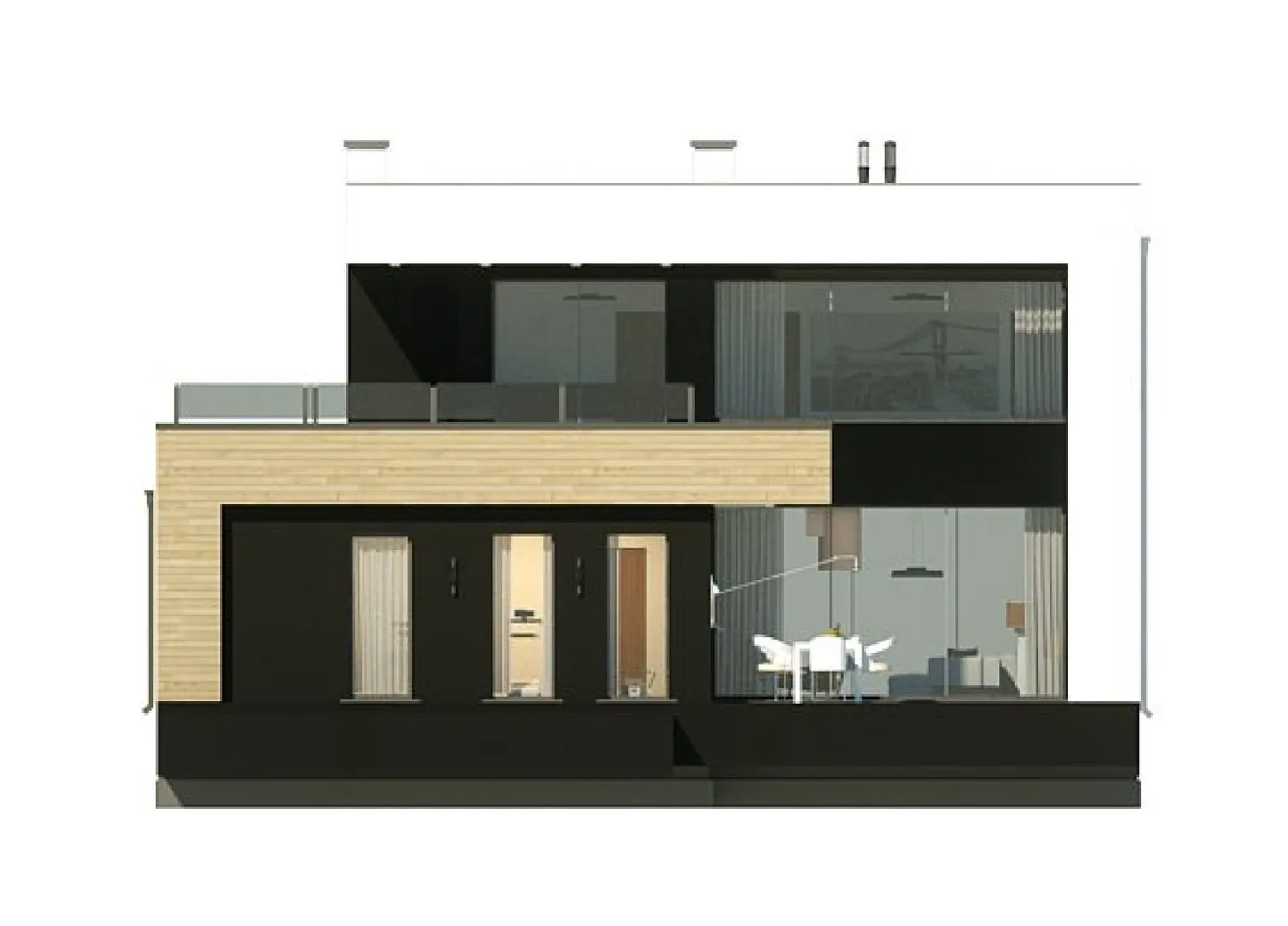 Двухэтажный дом в стиле хай-тек с цокольным этажом S3-405-1 (Zx123 P)