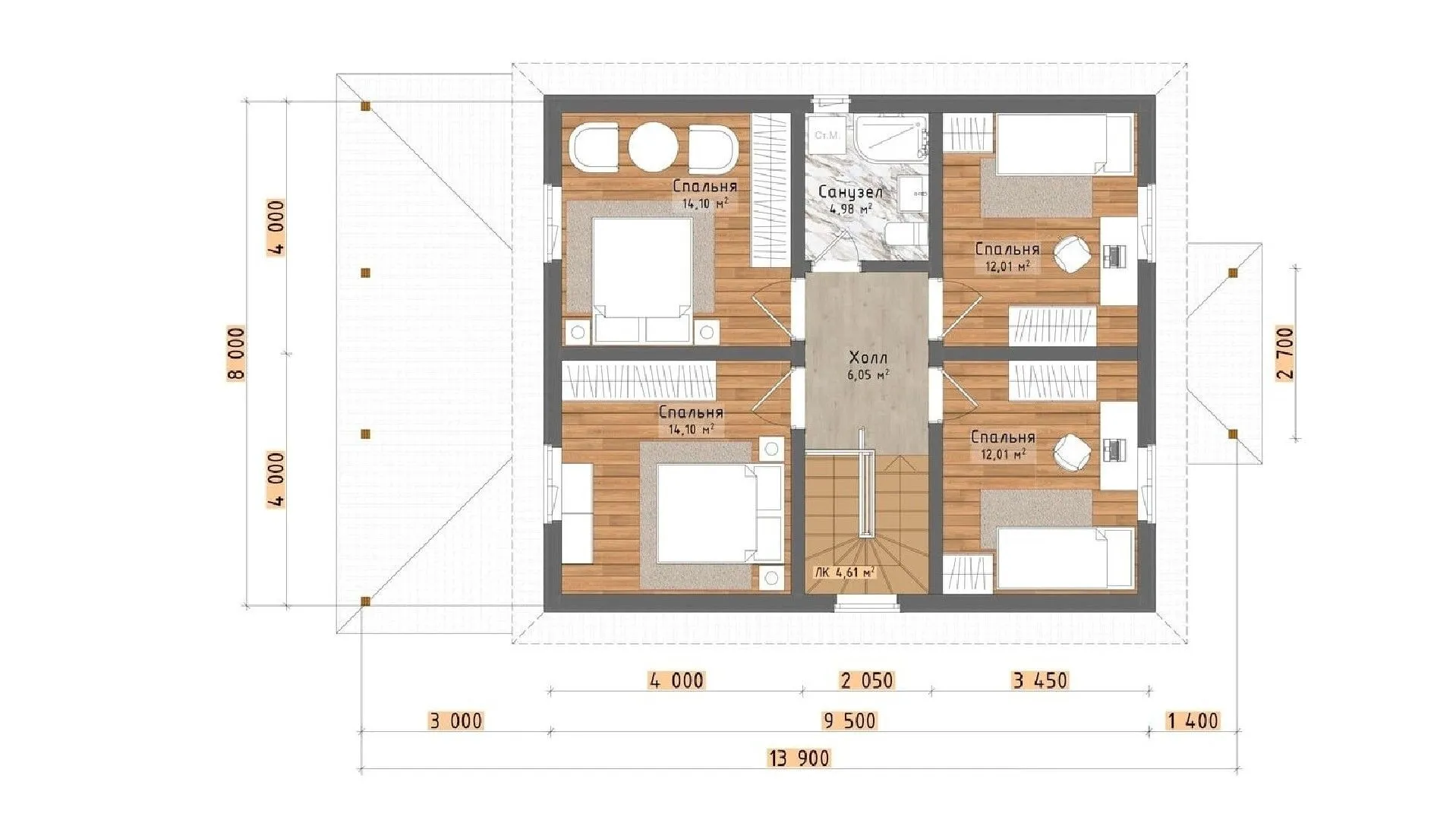 Добро пожаловать в уютный уголок европейской сказки – двухэтажный каркасный дом «Лаванда». Его элегантный силуэт, выполненный в классическом европейском стиле, обретает особую тепло и свет, благодаря деревянному каркасу внешних стен, который создаёт уют и атмосферу настоящего дома. Просторные комнаты на двух уровнях, рассчитанные на круглогодичное проживание, дарят вам возможность наслаждаться комфортом в любой сезон, от душевных весенних вечеров до уютных зимних дней. Дом без лишних украшений – здесь нет балконов, лоджий и встроенной автостоянки, но есть то, что действительно важно – просторная терраса. С неё открываются живописные виды на окрестный ландшафт, где вы сможете отдохнуть после трудового дня или устроить семейный пикник. Четырехскатная вальмовая крыша добавляет дому изысканности и функциональности, гарантируя надёжную защиты от непогоды, а лаконичная архитектура подчёркивает элегантность и простоту дизайна. «Лаванда» – это не просто дом, а воплощение гармонии с природой и простоты в каждой детали.