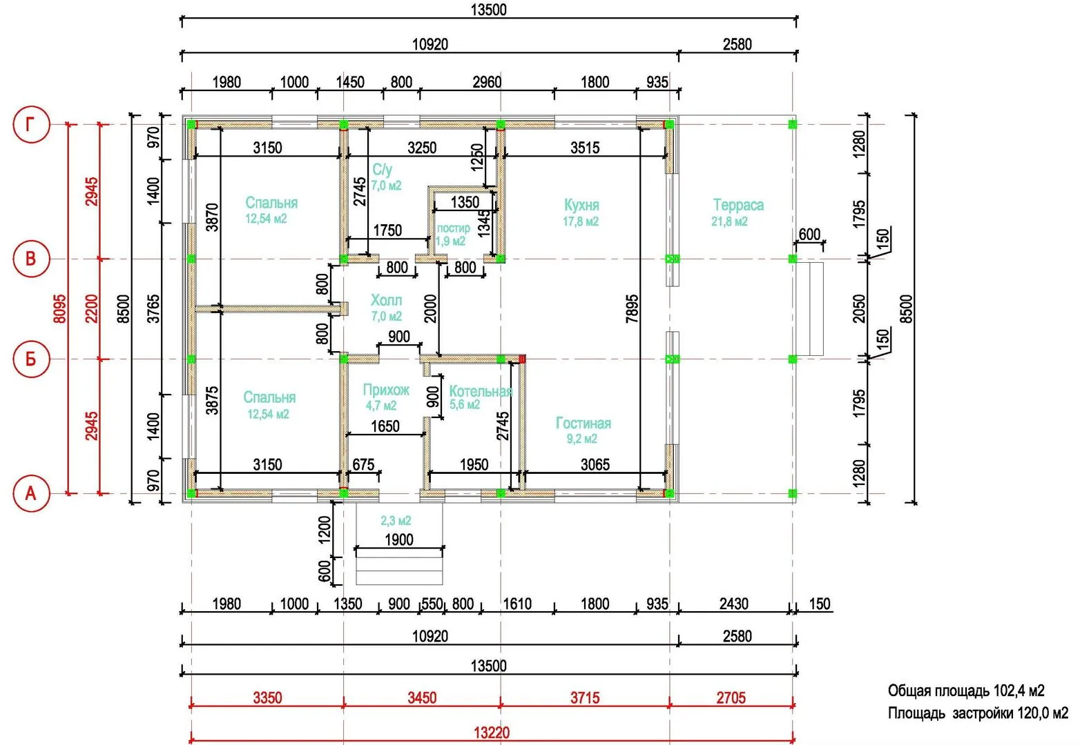 Площадь дома 100 м2