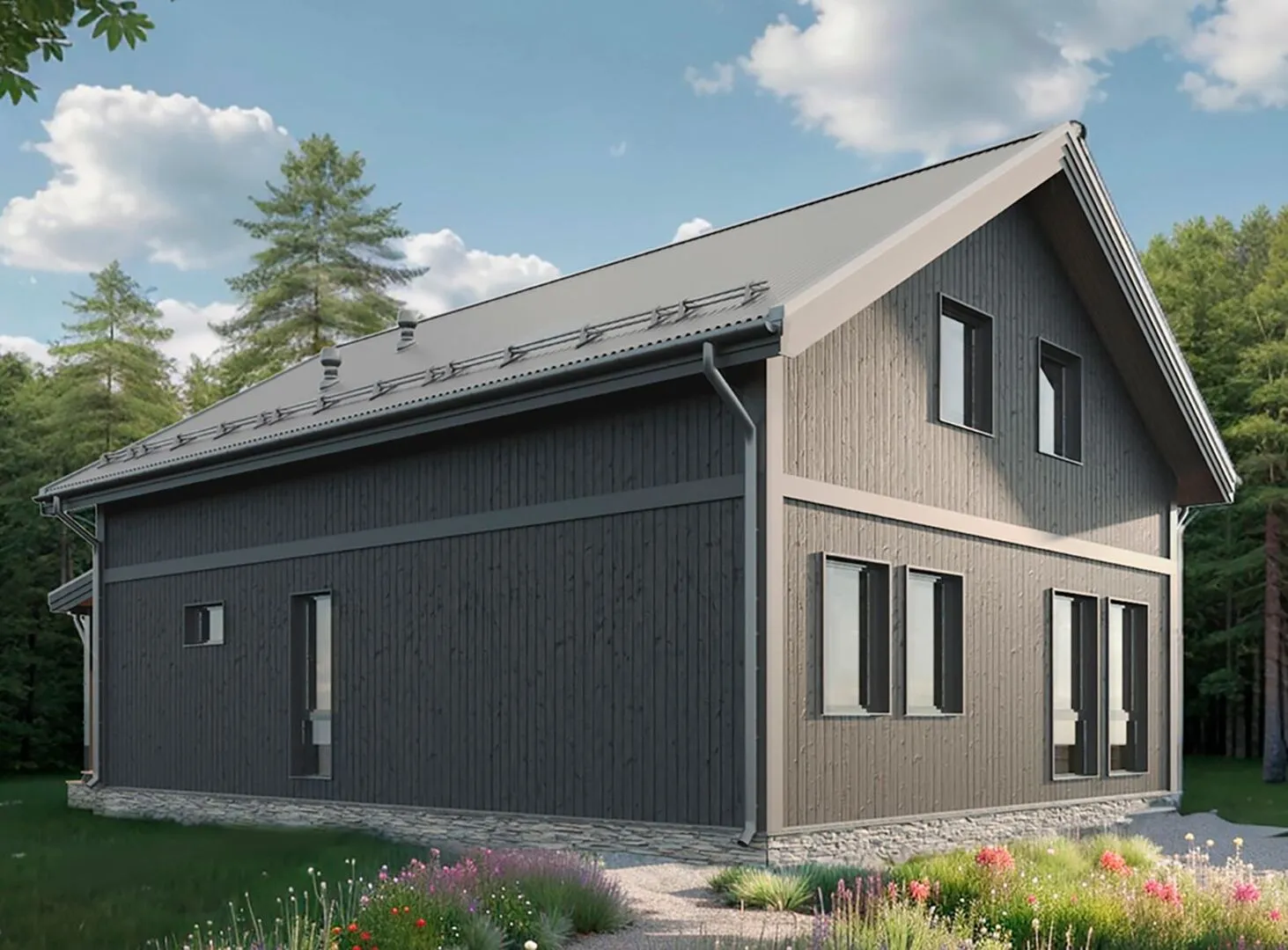 **Harmony R200 – воплощение скандинавского спокойствия в вашем доме** Элегантный двухэтажный дом Harmony R200 приглашает на встречу с природой, сохраняя при этом всё необходимое для комфортного круглогодичного проживания. Минималистичная скандинавская стилистика подчёркивается лёгкой деревянной каркасной конструкцией, нежной гофрированной крышей и обилием естественного света. Просторные внутренние пространства соединяются плавно: от открытой гостиной до уютных уголков отдыха, где каждая деталь продумана с любовью к комфорту и функциональности. Уникальная гармония стиля и технологий делает этот дом идеальным выбором для тех, кто ценит простоту и эстетику современной архитектуры. Две этажи открывают простор для семьи и друзей: просторная кухня-столовая приглашает к совместным трапезам; спальни и ванные комнаты располагаются так, чтобы обеспечить полную приватность. Встроенные современные решения по утеплению и вентиляции гарантируют тепло зимой и прохладу летом, а лакокрасочные материалы бережно защищают от неблагоприятных погодных условий. На завершении впечатления служит просторная терраса, куда вы можете пригласить друзей на вечерние ужины, устроить пикник с семьёй или просто насладиться видом на тихий сад. Отсутствие балконов и прилагаемого гаража подчёркивает лаконичность и подчёркивает внимание к внутреннему пространству, где каждый уголок вдохновляется естественным светом и атмосферой уюта. Harmony R200 – это ваш тихий уголок устойчивой красоты и современных удобств, который станет продолжением вашей истории счастья.