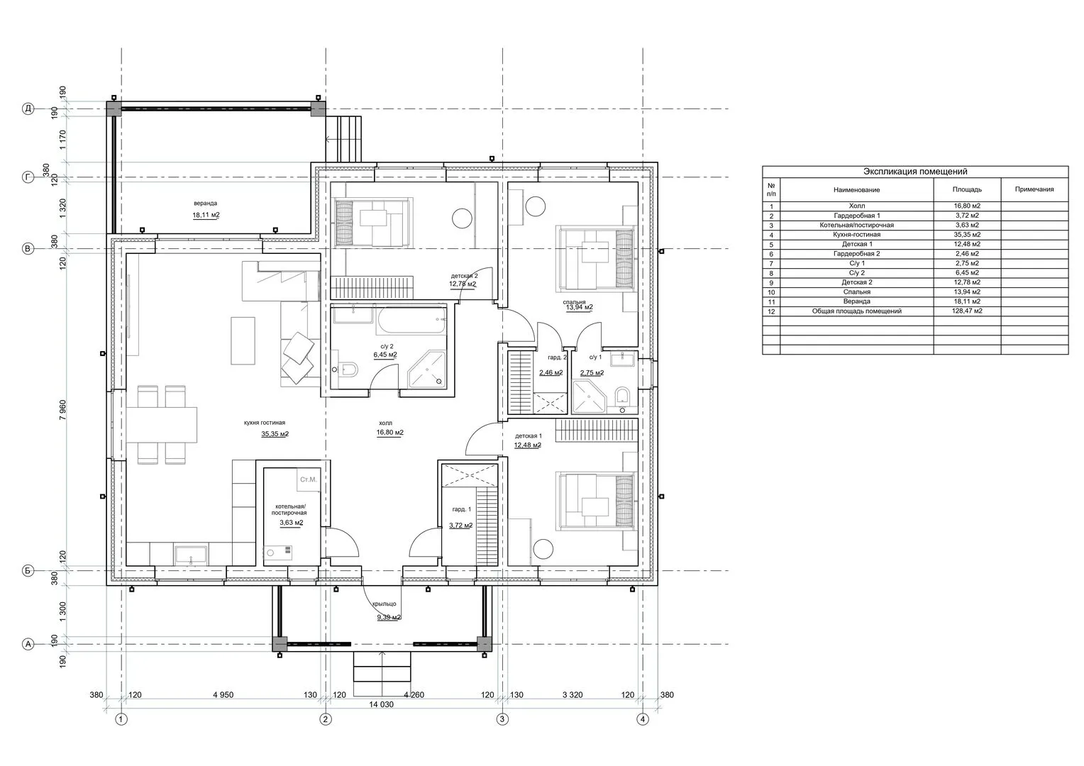 Площадь дома 128 м2