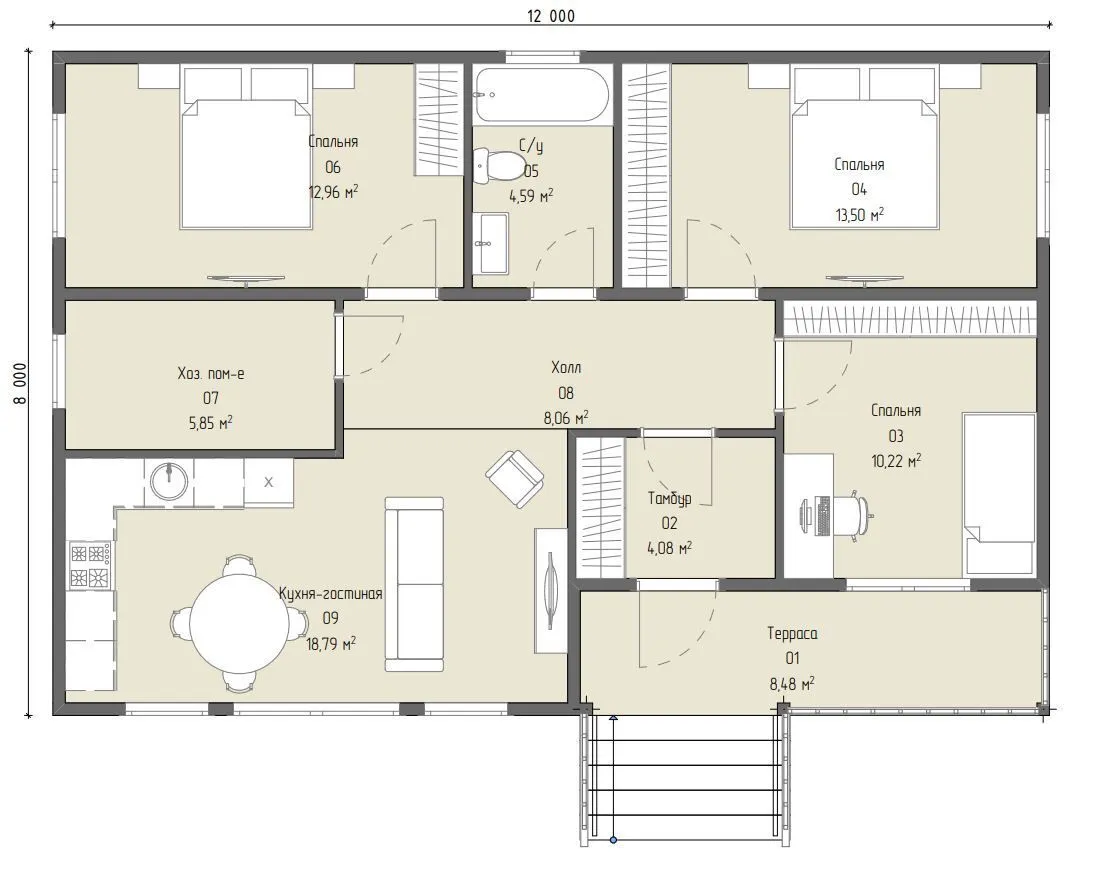 NODO-87. Одноэтажный жилой дом с крыльцом