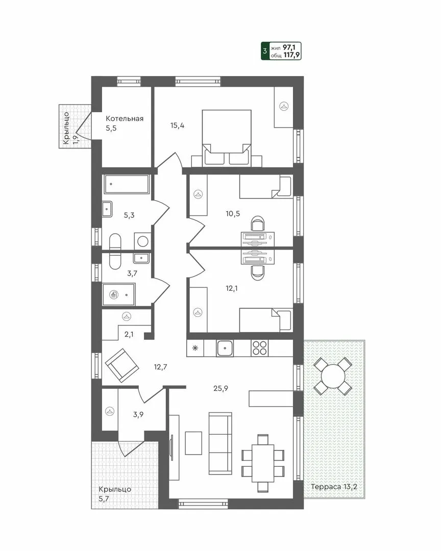 Добро пожаловать в уютный уголок 11‑го квартала – Дом типа 3 от ИЖД «Совушки». Это единственный надземный этаж – идеальная площадка для тех, кто ценит простоту, спокойствие и гармонию с природой. С европейским архитектурным стилем, строгими линиями и мягкой теплотой газобетонных стен, этот дом дарит ощущение уюта даже в холодное время года – круглогодичная проживательность подтверждена надёжной глиняной кровлей. Здесь вы почувствуете себя в гостиной с балконом и террасой, а именно – в верандах, где каждый вечер можно наслаждаться видом на свежий воздух, а утром обретать ритм жизни у открытого окна. Пристроенный гараж не предусмотрен, но есть удобный приёмной в форме чердачного помещения, где можно разместить вещи, которые хочется хранить у себя дома, но не в каждый день использовать. Веранда становится идеальным местом для чтения, обеда с семьей, игр для детей или вечернего чая, создавая ощущение непрерывного диалога между внутри и внешним миром. Этот дом – это ваш новый дом, созданный для тех, кто ищет простую, но элегантную жизнь, где традиции встречаются с современностью, а уют и комфорт становятся частью каждого дня. Выберите свой личный уголок в стиле европейской классики, где можно почувствовать атмосферу спокойной жизни, наслаждаясь красивыми вечерами «навсегда».