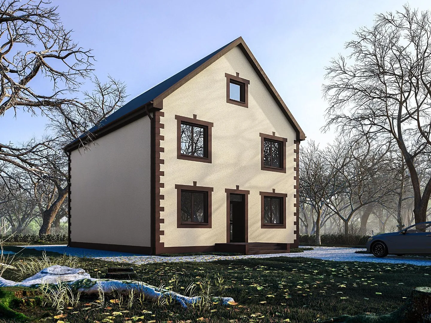 Невероятно уютный двухэтажный дом, выполненный в классическом европейском стиле, приглашает к своему сердцу. Гибкая планировка, рассчитанная на комфортное круглогодичное проживание, сочетает в себе элегантность и практичность: просторные комнаты наполнены светом, а тепло камина создаёт ощущение уюта в любой сезон. Стены из газобетонных блоков гарантируют не только отличную теплоизоляцию, но и долговечность, а двухскатная кровля добавляет дому характерного очарования, придавая ему слегка романтичный силуэт посреди природы. Отсутствие внешних балконов и веранд не умаляет привлекательности этого дома – внутренние пространства обогащены уникальной чердачной площадью, которую можно превратить в уютную библиотеку, спа‑комнату или домашний офис. Удобный дворажный вход ведёт к большой гостиной, а свободное пространство рядом с кухней позволяет легко организовать семейный обед и вечерние встречи. Этот дом – идеальный выбор для тех, кто ценит европейскую элегантность, комфорт и надежность, не забывая при этом о простоте и функциональности повседневной жизни.