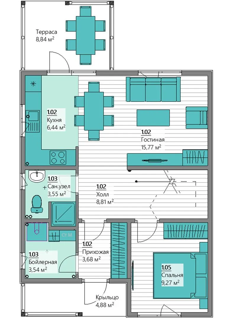 Одноэтажный жилой дом S-222