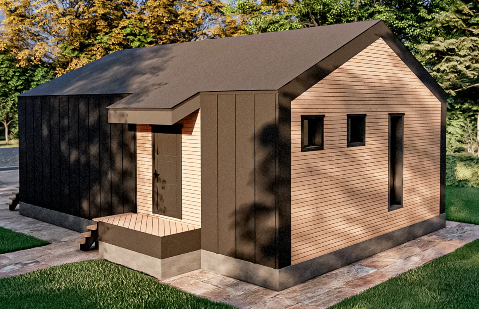 **Каркасный дом «ДСС‑002» – ваш собственный уголок благодати** В этом уютном доме с единственным надземным этажом каждая деталь говорит о гармонии простоты и современного комфорта. Архитектурный стиль барнхаус, с его открытым пространством, массивными деревянными каркасами и традиционной двускатной крышей, создаёт атмосферу тепла и надёжности, словно вы живёте в обитель уединения, но при этом в полной гармонии с природой. Благодаря круглогодичному проживанию и продуманной изоляции, дом остаётся светлым и комфортным в любую погоду, а просторные помещения наполняются естественным светом. Терраса, выходящая от главного входа, становится идеальным местом для завтраков с видом на зелёные просторы и вечерних прогулок. Здесь можно устроить уютные пикники, читать у камина или наслаждаться ароматом свежего хлеба в тишине собственных стен. Внутри дом раскрывает простую, но функциональную планировку: открытая кухня, светлые комнаты, где легко создать свою собственную гармонию и уединение. Именно такой дом – это не просто место проживания, а стиль жизни. Его деревянные стены дарят натуральный характер, а уютный барнхаусный дизайн делает каждый день особенным. Приглашаем вас открыть для себя ощущение домашнего тепла, где каждая ветка дерева шепчет историю о простых радостях и о гармоничном взаимодействии с природой.