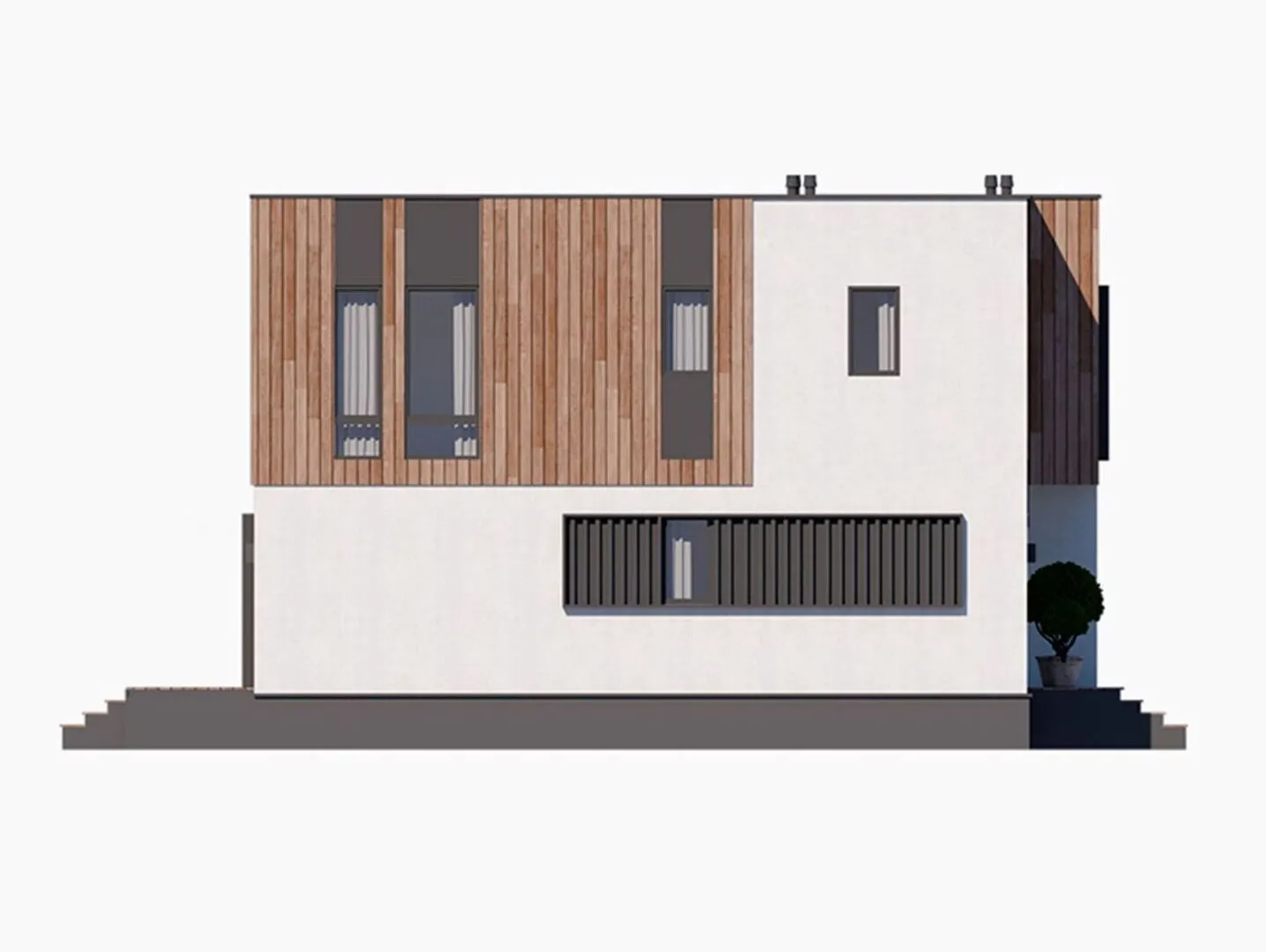 **ХАЙ-ТЕК-161** – это воплощение современного комфорта и передовых технологий в одной гармоничной структуре. На два надземных этажа разыгрывается открытая планировка; просторные комнаты открыты к большому свету, а отсутствие балконов и ложей гарантирует чистую, безводную линию фасада, характерную для хай‑тек стиля. Благодаря каркасно‑панельной технологии внешние стены обладают отличной теплоизоляцией, а плоская крыша обеспечивает плавный переход от дома к естественной среде, создавая почти «небесный» вид. Тераса приглашает к расслаблению и встречам: здесь можно насладиться свежим воздухом и великолепным видом на окрестности, а встроенные окна и стеклянные перегородки позволяют ощутить ощущение простора даже в закрытом помещении. Круглогодичное проживание гарантирует комфорт как в жаркую, так и в холодную погоду, а модернизированное внутреннее оснащение – от умных систем управления до экологичных материалов – делает ваш дом не только стильным, но и практичным. ХАЙ-ТЕК‑161 – это идеальное сочетание технологичности, эстетики и благополучия, способное превратить любой дом в настоящее произведение архитектурного искусства.