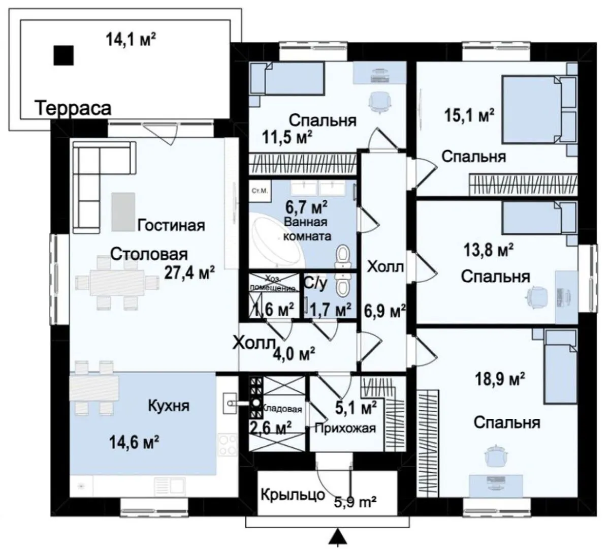 Фото 1 Классический одноэтажный дом с четырьмя спальнями S3-127-6 (Z67 A)