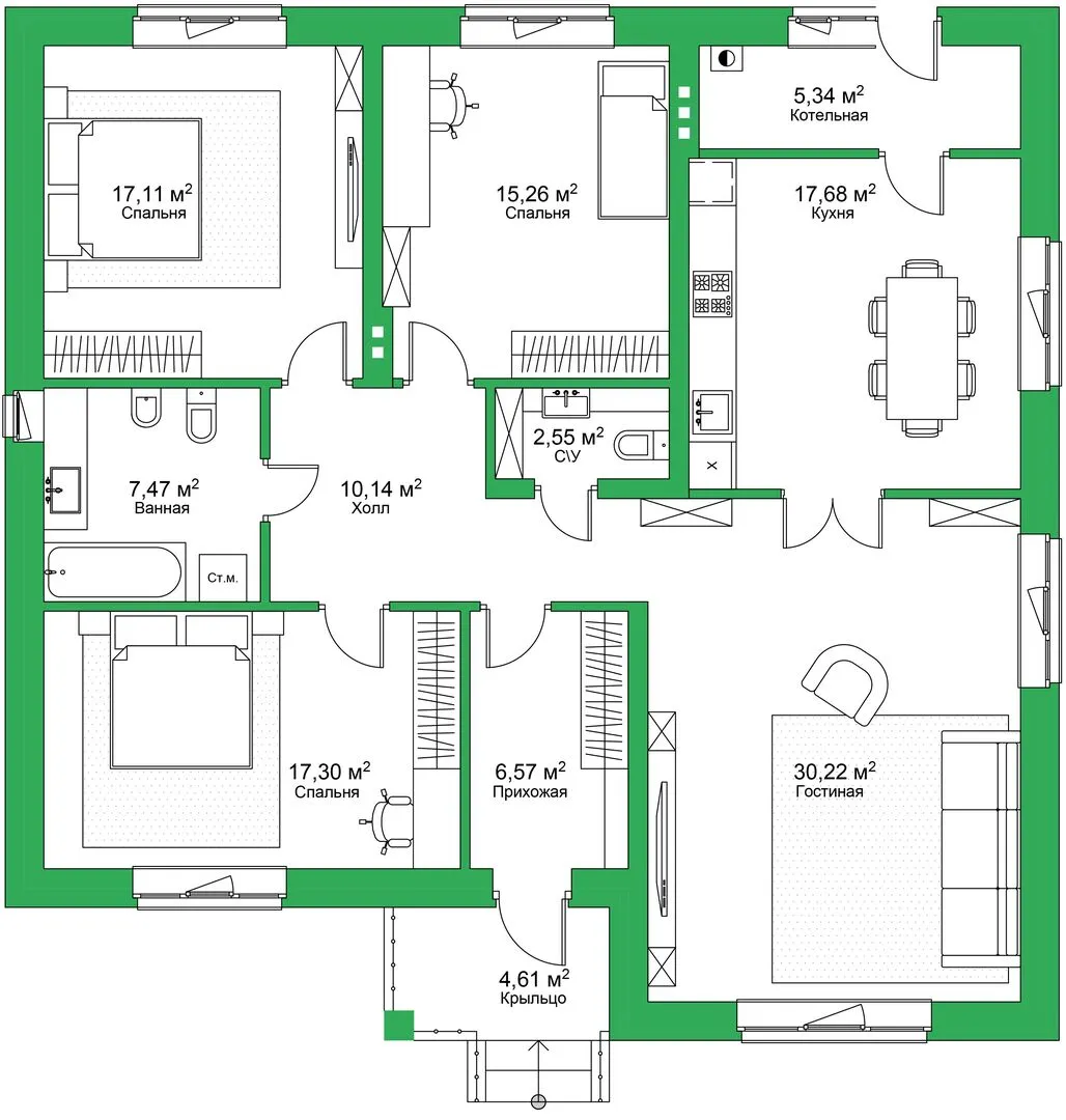Площадь дома 129 м2