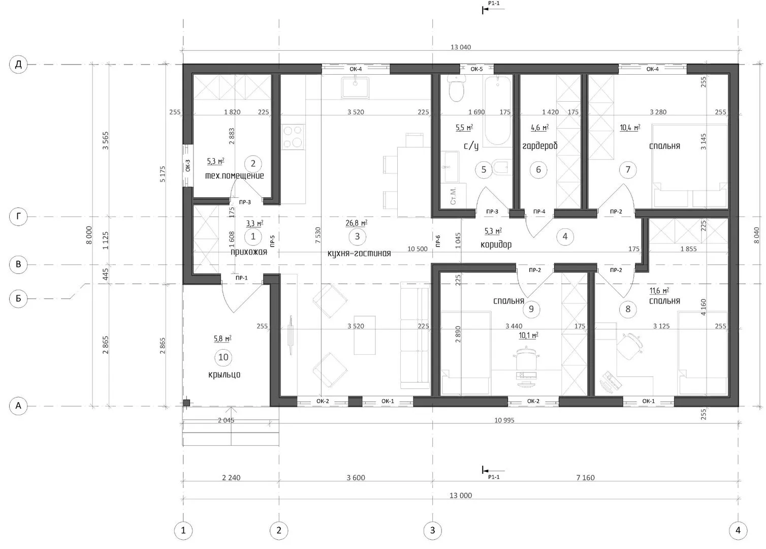 **Метелица** – это уютное убежище единого этажа, созданное для тех, кто ценит тепло и простоту проживания круглый год. Величественный фасад, выполненный в классическом стиле, в сочетании с теплыми цветами древесины и каменных деталей, создаёт ощущение надёжности и уюта сразу при первом взгляде. Пустые пространства на прилегающей территории оставляют свободное место для индивидуального оформления: сада, детской игровой площадки или уютной зоны отдыха под открытым небом. Внутренний план дома организован так, чтобы каждый уголок отвечал высоким требованиям комфорта и функциональности. Разделены жилые и рабочие зоны, просторная кухня с островком и обеденный стол позволят вам проводить много времени в кругу семьи, а большие окна пропускают максимум натурального света, создавая ощущение простора и свежести. Теплый камин в гостиной и просторная спальня делают дом идеальным местом для расслабления после долгого дня. Это место, где каждый вечер начинается с лёгкой тишины и завершается уютом и теплом, а каждый день обещает новые, яркие впечатления.