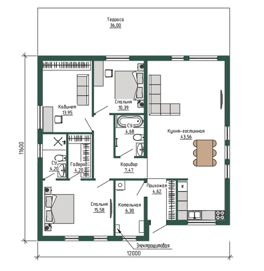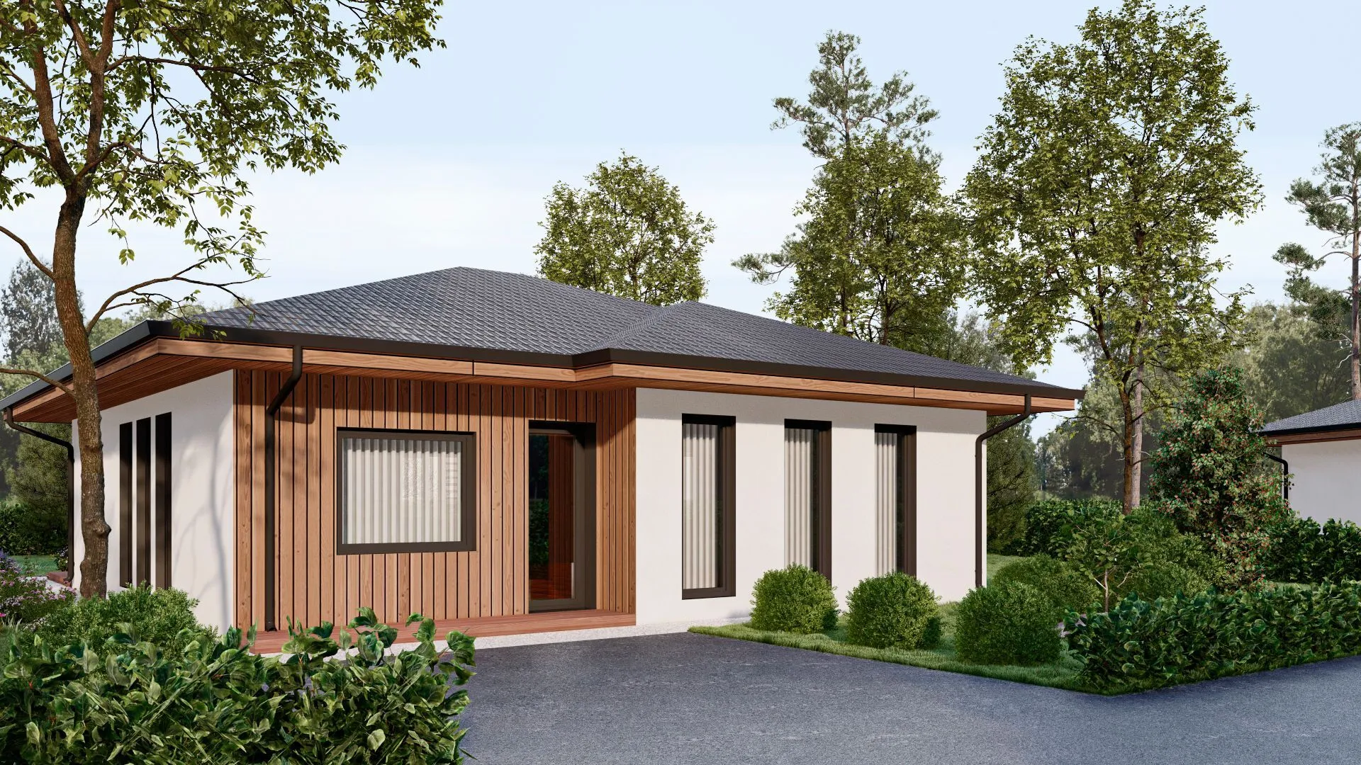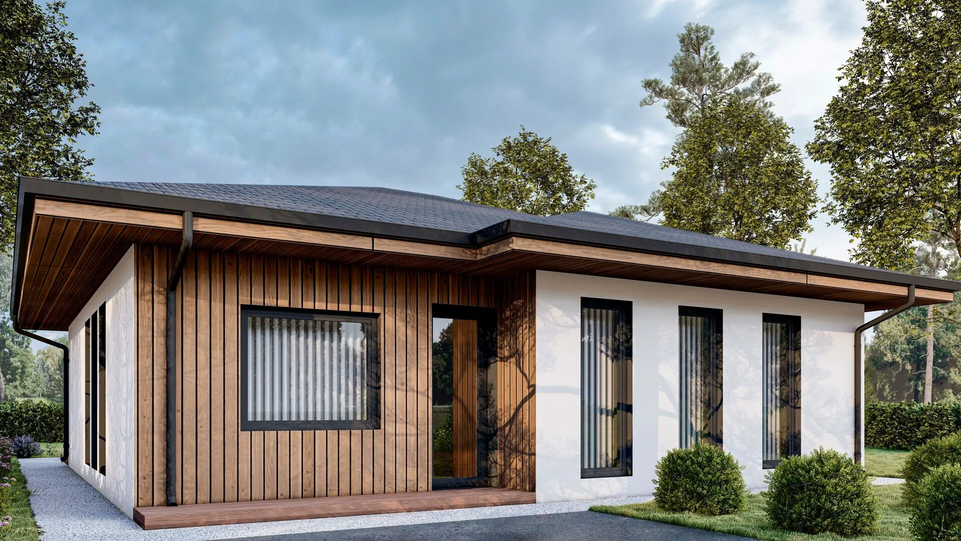 **Нежный уголок в стиле скандинавской простоты** Погрузитесь в атмосферу уюта и современного комфорта в этом одноповерховом доме, созданном специально для круглогодичного проживания. Его лаконичные линии, чистые, без лишних деталей, отражают дух скандинавского дизайна: функциональность встречается с невесомой простотой. Премиальные газобетонные блоки создают прочную, теплоизолирующую стену, позволяя вам наслаждаться идеальной температурой как в жаркое лето, так и в холодные зимние дни. Четырехскатная, вальмова крыша придаёт зданию мягку арки и изысканный профиль, подчёркивая северный шарм. Огромная терраса — ваш собственный личный оазис для семейных встреч или вечерних уютных посиделок под звёздами. Здесь можно организовать маленький гриль, уютный барбекю уголок или же просто наслаждаться видом на ландшафт, наполненный кристально чистыми цветами. Полностью открытая пространство без балконов, веранд и пристроенного гаража делает жизнь в этом доме свободной от лишних ограничений. Всё, что вам нужно — это смело планировать собственный образ жизни, не оглядываясь на внешние рамки. Эта изящная резиденция сочетает в себе минимализм с современными удобствами, создавая идеальное соотношение между эстетикой и практичностью. Вдохновляйтесь простотой скандинавского дизайна, где каждый уголок подсказывает: «Здесь можно быть собой». Приготовьтесь открыть новый уровень домашнего комфорта, где каждая деталь пронизана элегантностью и теплом.