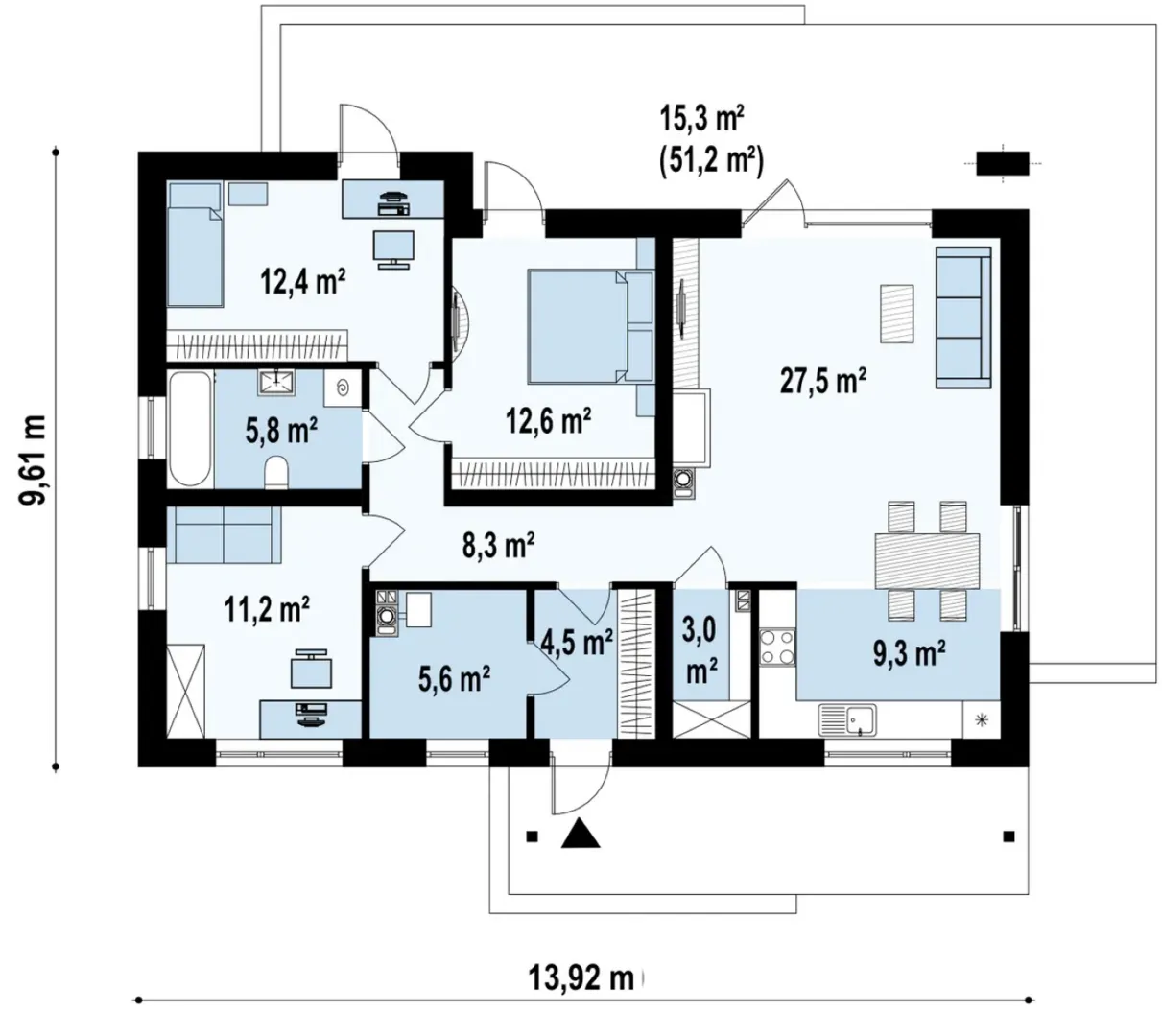 Заказать конусльтацию по:Небольшой одноуровневый частный дом S3-100 (Z191)
