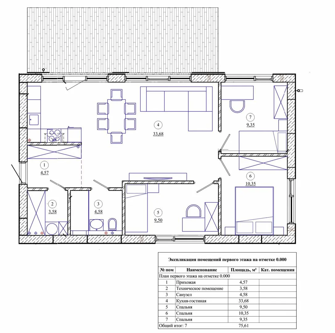 Заказать конусльтацию по:Одноэтажный дом «Эстетика ПСБ» 1-75