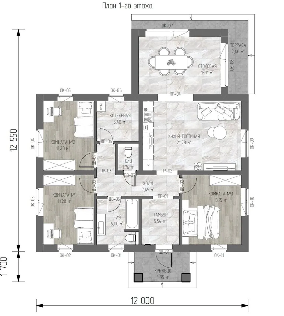 Откройте для себя настоящий современный комфорт в одном из самых привлекательных проектов – одноэтажный дом **«Фидий»**. Его гламурный хай‑тек дизайн сочетает в себе лаконичность линий и яркие материалы, где газобетонные блоки внешних стен создают визуально легкое, но при этом надёжное и изоляционное покрытие. Плоская кровля подчёркивает минималистскую эстетику и предоставляет простор для дополнительных уютных уголков. Дом полностью предназначен для круглогодичного проживания, где каждая деталь проработана так, чтобы удовлетворить самые взыскательные требования к качеству и удобству. Гармония между современностью и практичностью проявляется в каждой комнате: просторные светлые помещения, большие окна и продуманное планировочное решение создают благоприятную атмосферу спокойствия и уединения. Несмотря на то, что балконы, веранда и прицепные гаражи отсутствуют, уникальный элемент в виде удобной террасы открывает возможности для отдыха на свежем воздухе, где можно насладиться природой, устроить вечернюю посиделку с друзьями или украсить пространство растениями. В итоге, **«Фидий»** – это идеальное сочетание современного стиля, энергоэффективности и практичности, которое воплотит в себе не только ваш комфорт, но и стиль жизни, позволяя сосредоточиться на том, что действительно важно – на себе и своём окружении. Выбирая этот дом, вы выбираете качественное, технологичное решение, которое будет радовать вас каждый день.