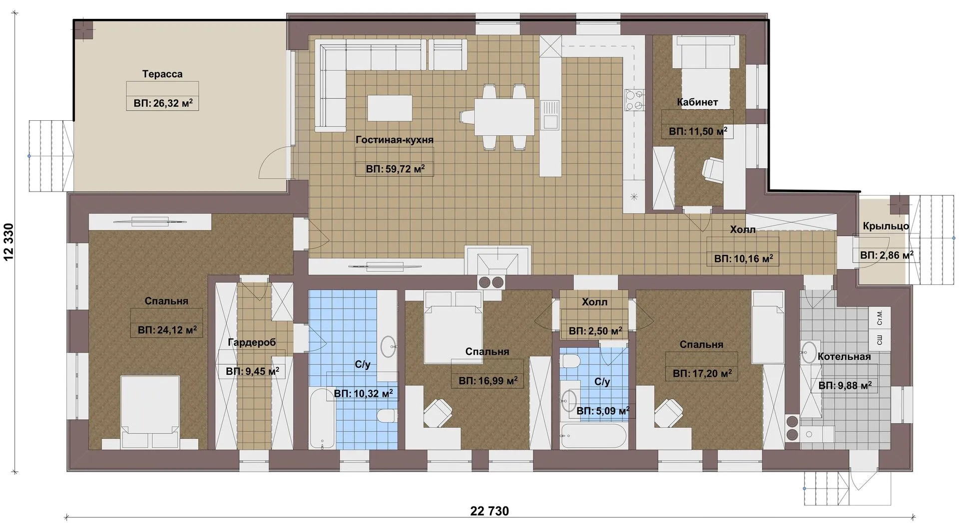 Заказать конусльтацию по:Одноэтажный дом FIXPLANS — 2042