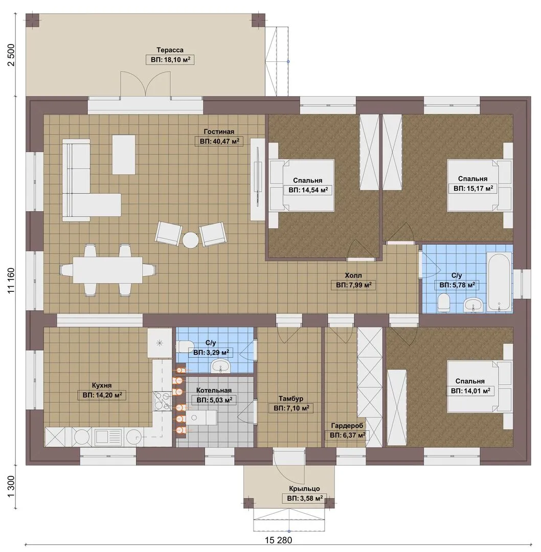 Одноэтажный дом Fixplans-8126