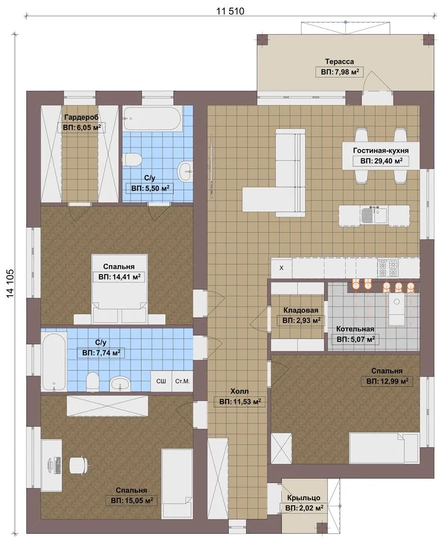 Одноэтажный дом Fixplans-8279